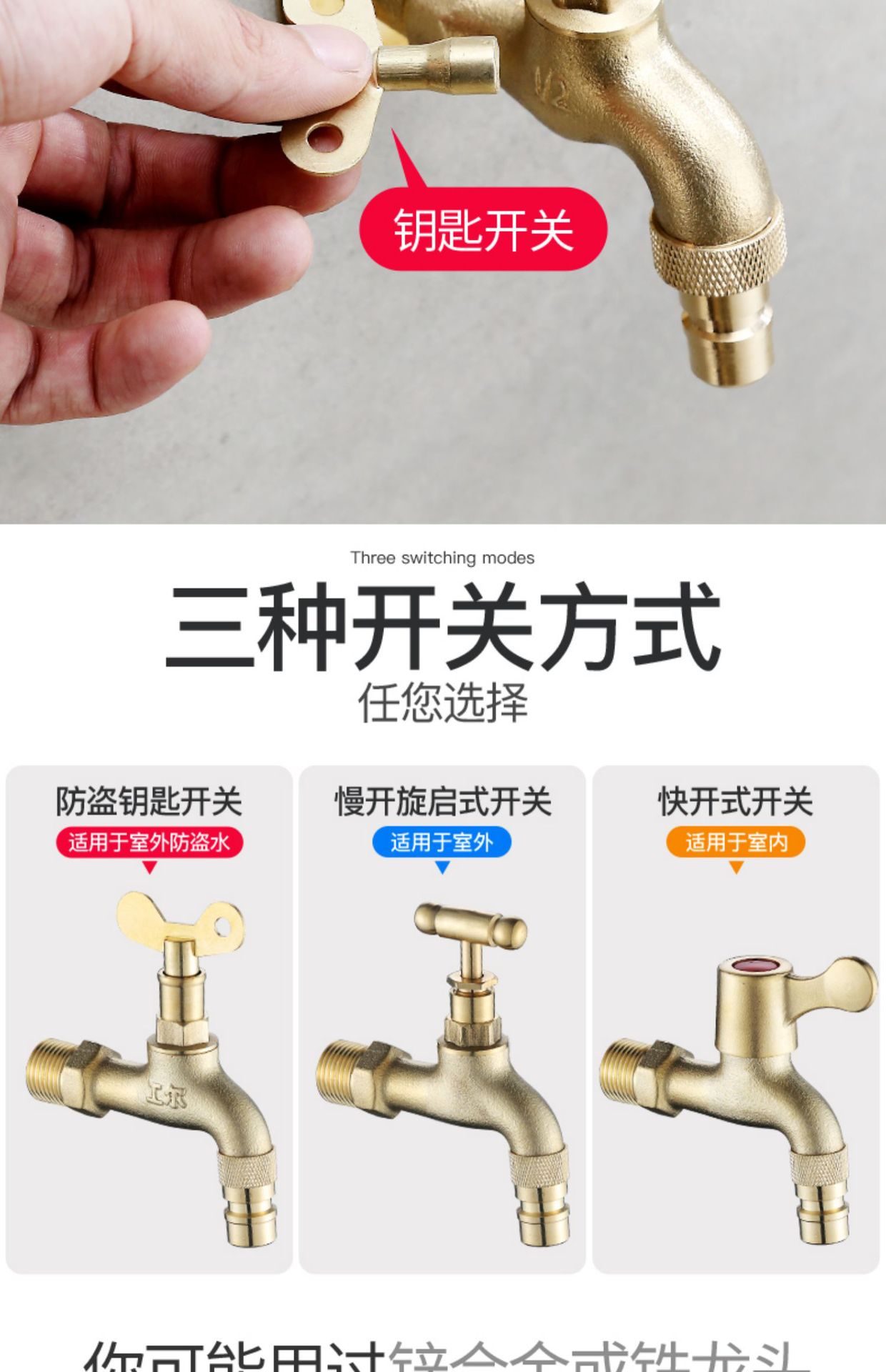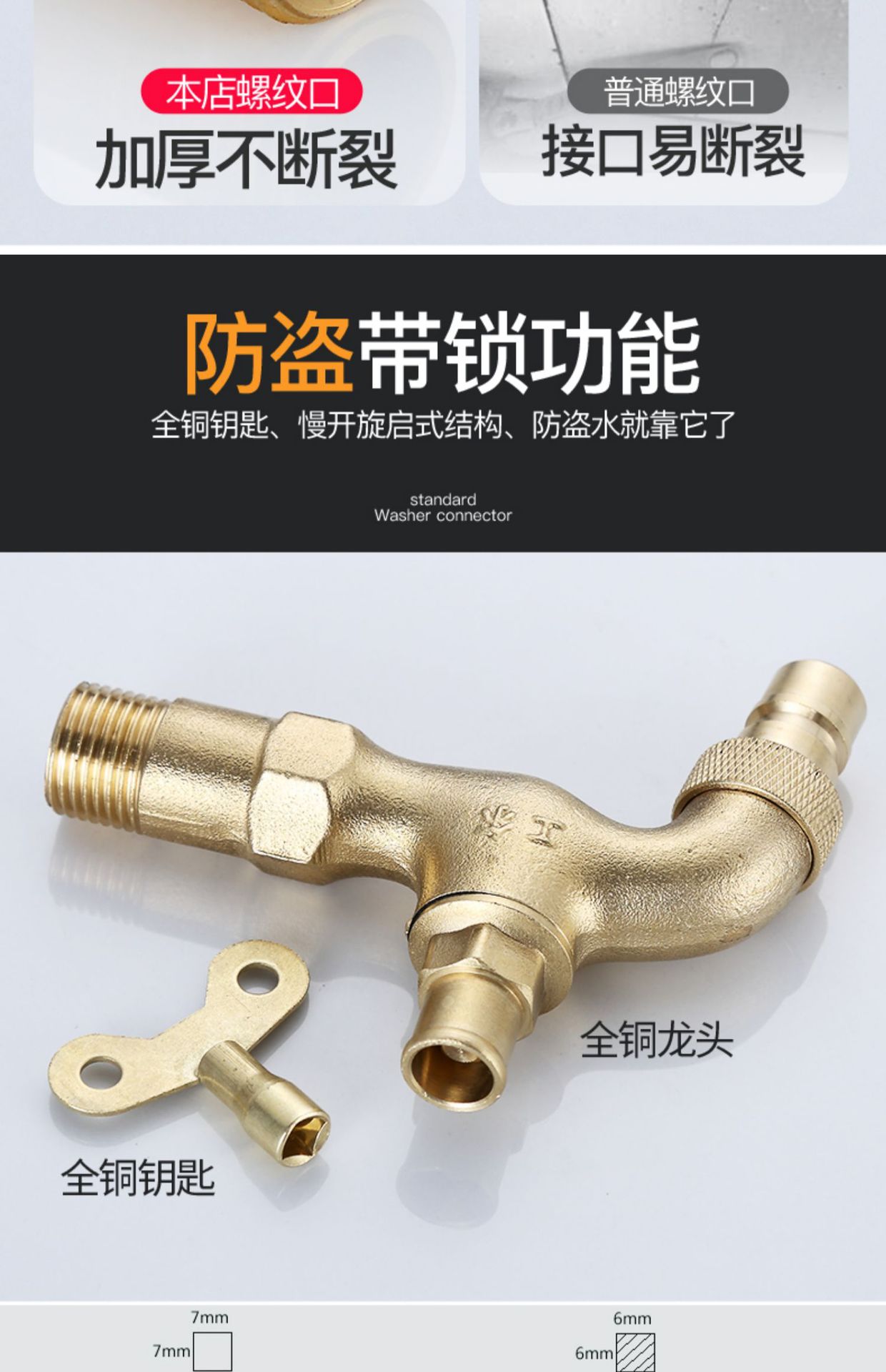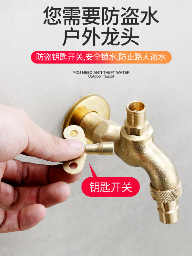 잠금 장치가 있는 전체 구리 수도꼭지, 실외 젖꼭지, 세탁기, 도난 방지, 가정용 동결 방지, 4포인트 및 6포인트 빠른 개방형 키 수도꼭지