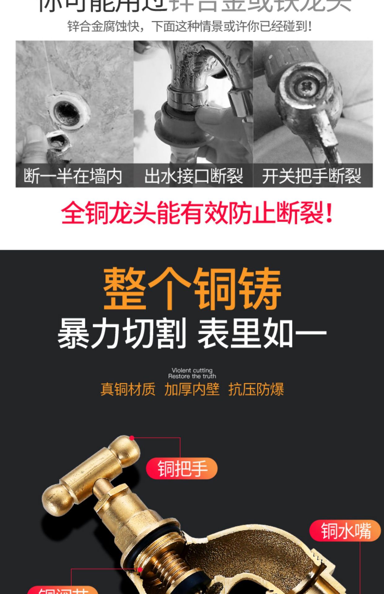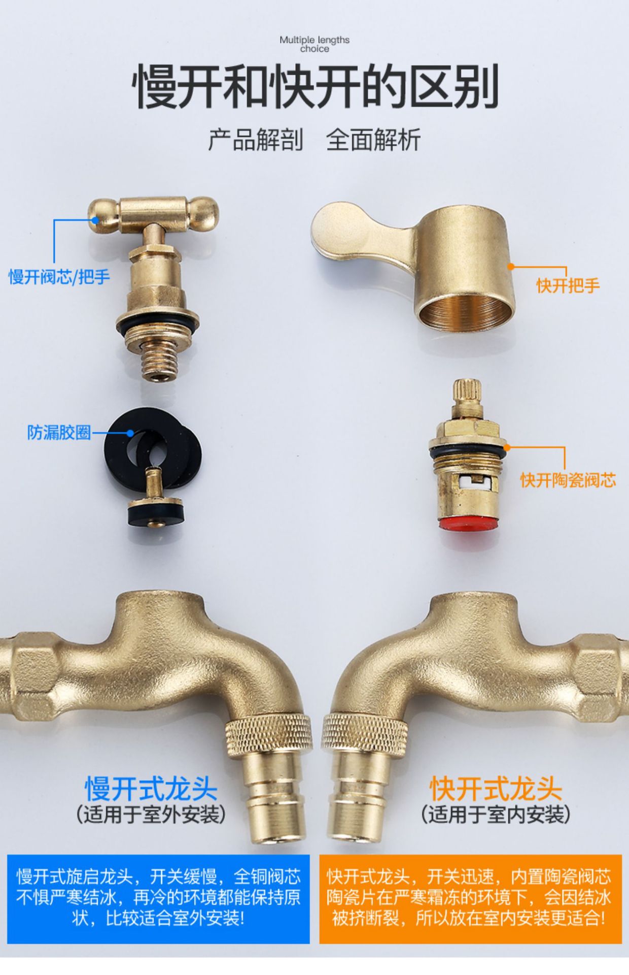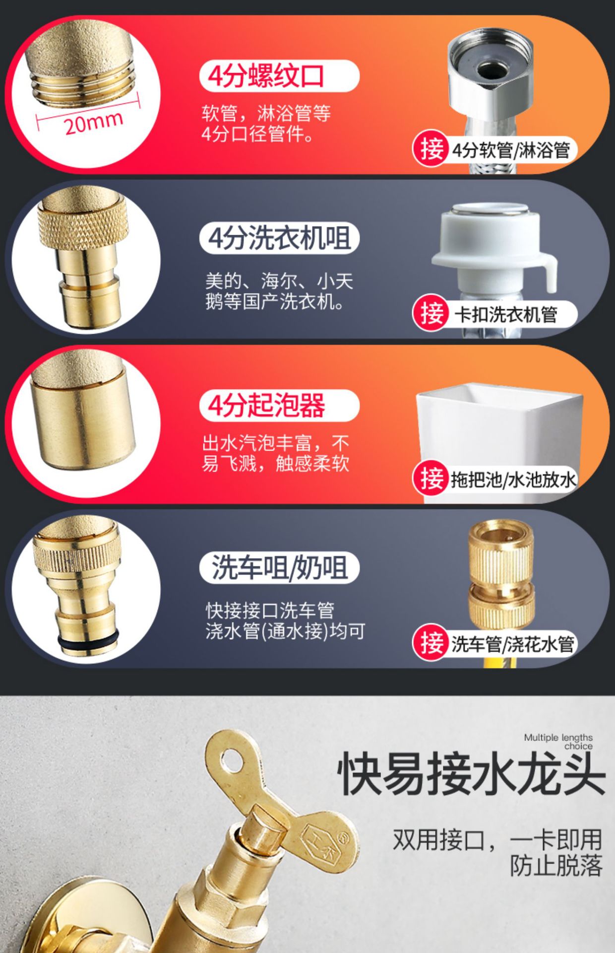 잠금 장치가 있는 전체 구리 수도꼭지, 실외 젖꼭지, 세탁기, 도난 방지, 가정용 동결 방지, 4포인트 및 6포인트 빠른 개방형 키 수도꼭지스토어 가기