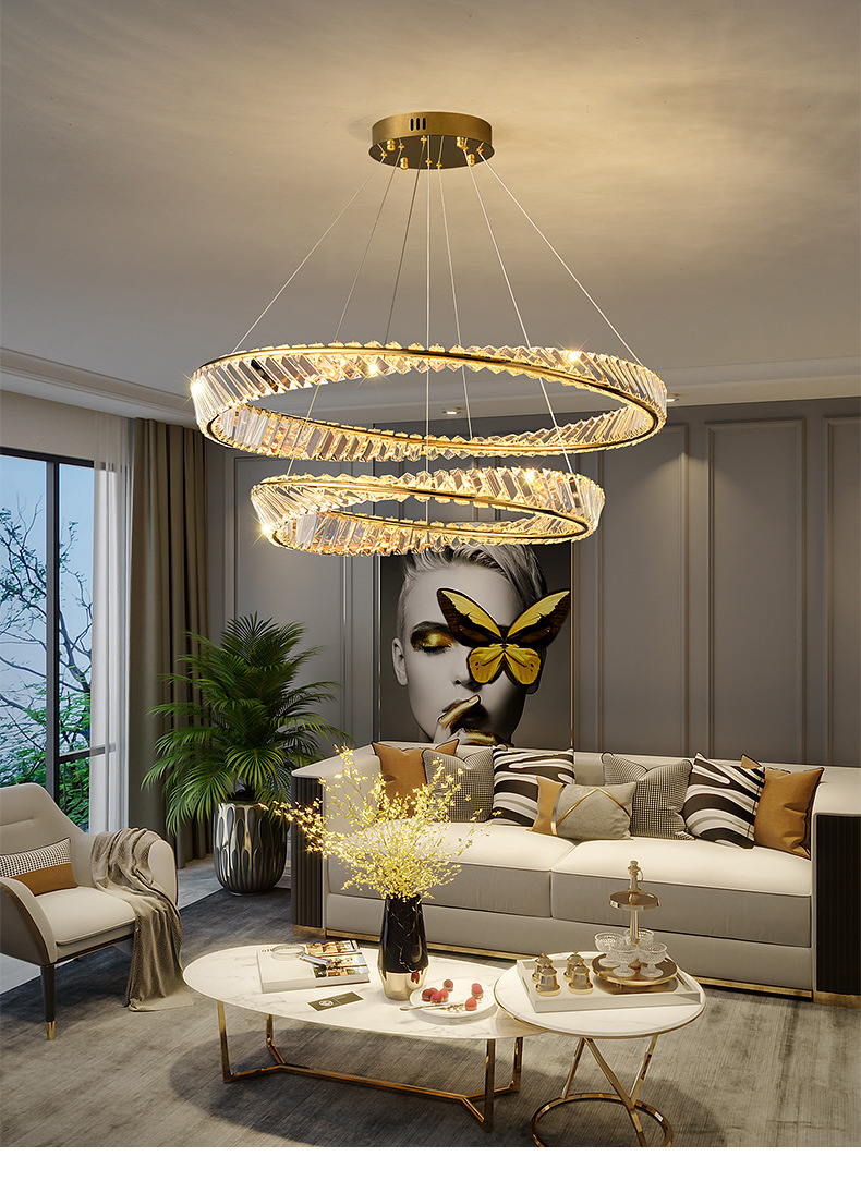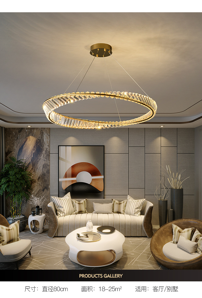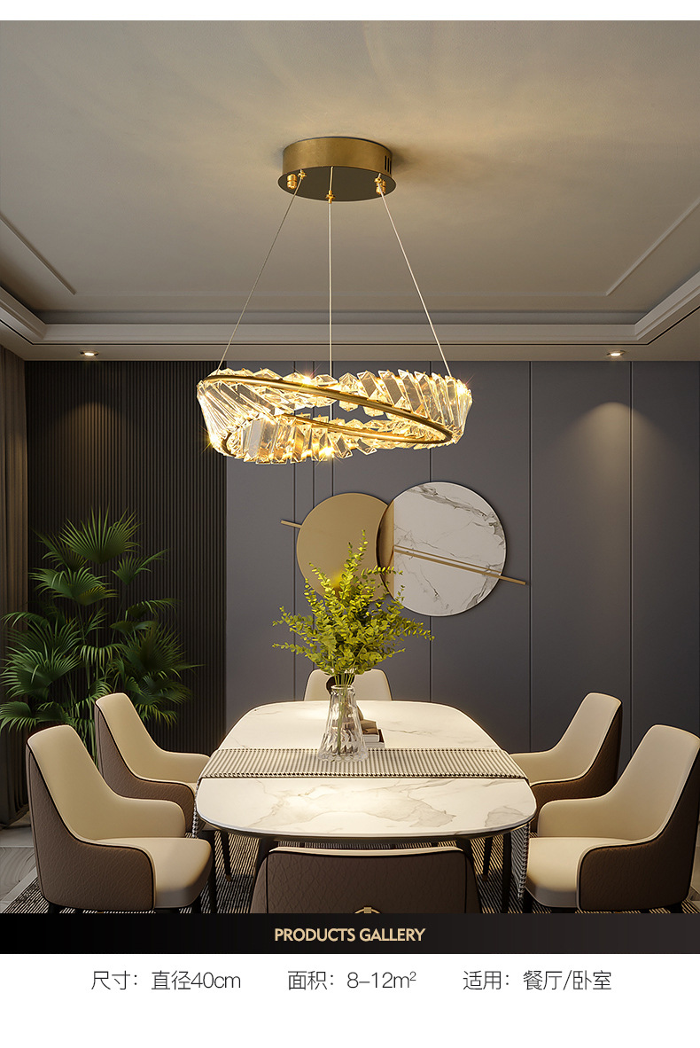 국경 간 이탈리아 스타일의 가벼운 럭셔리 거실 크리스탈 샹들리에 현대적인 미니멀리스트 레스토랑 램프 북유럽 크리 에이 티브 링 디자이너 램프