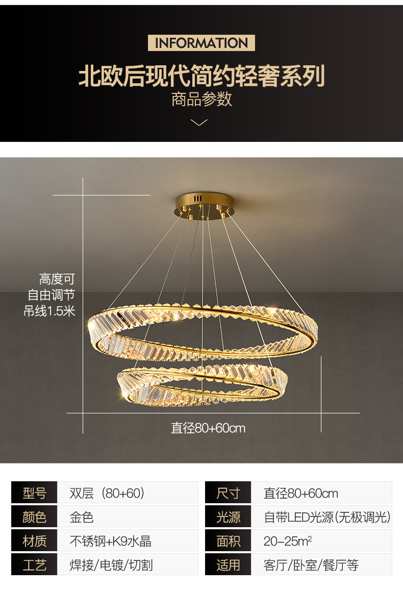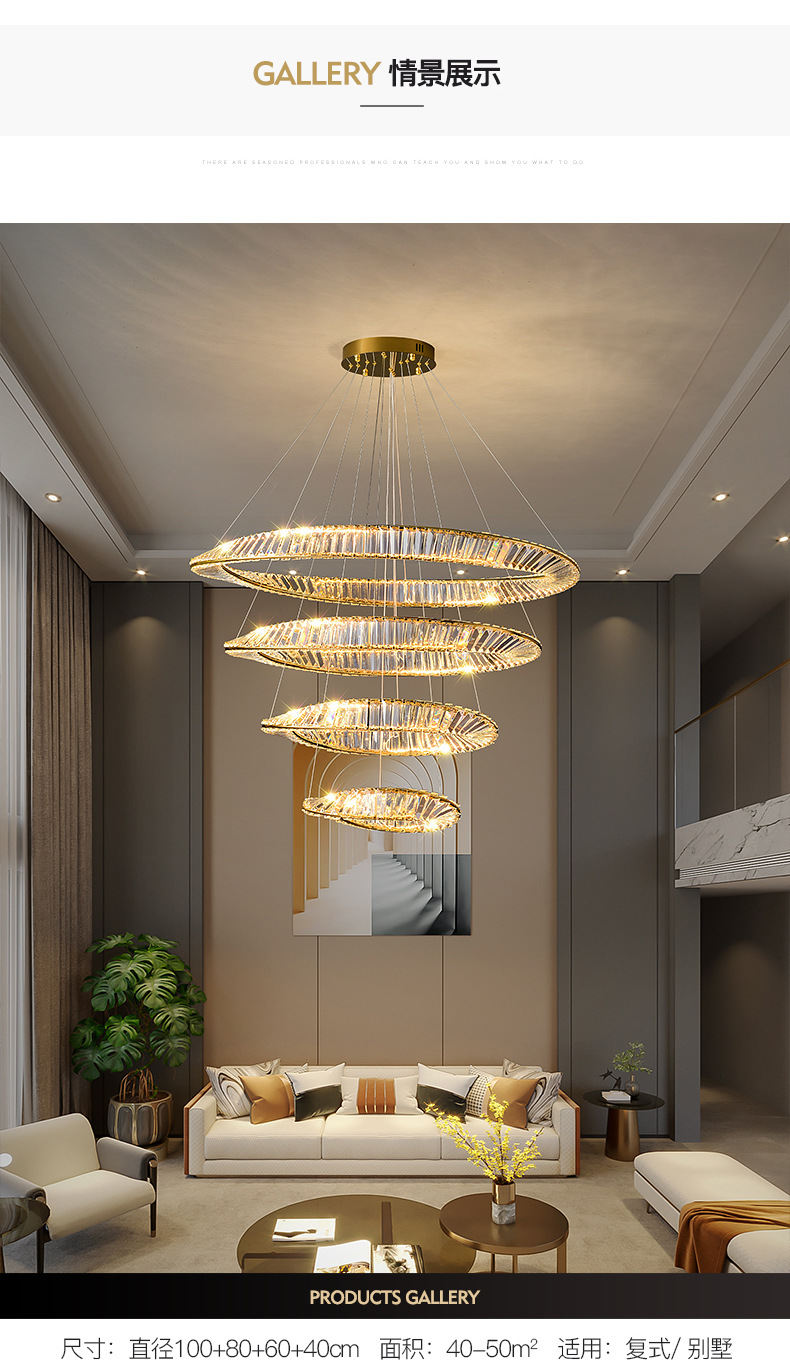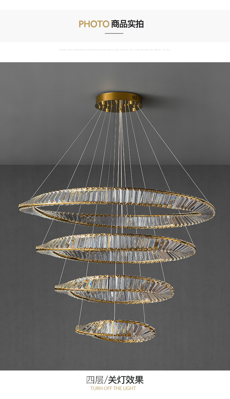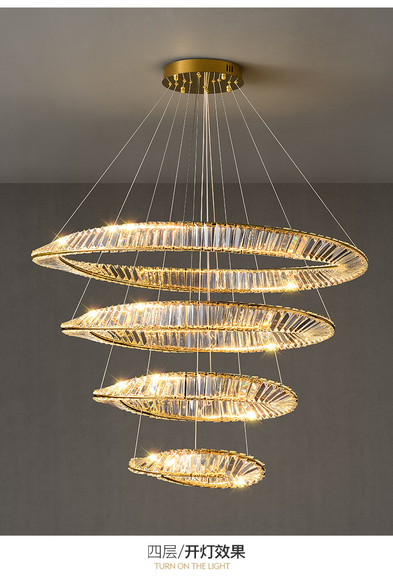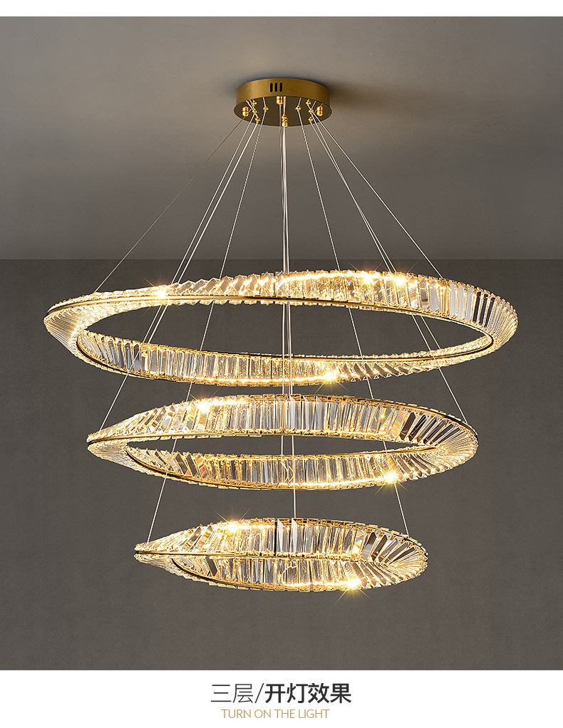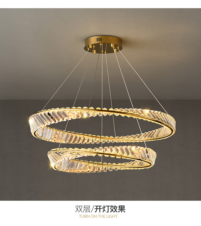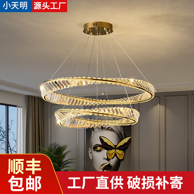 국경 간 이탈리아 스타일의 가벼운 럭셔리 거실 크리스탈 샹들리에 현대적인 미니멀리스트 레스토랑 램프 북유럽 크리 에이 티브 링 디자이너 램프스토어 가기