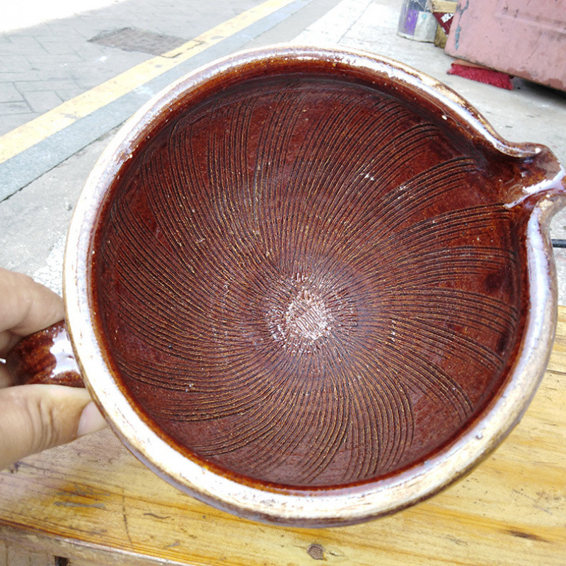 고추를 다지고 마늘을 다지기 위한 손잡이가 달린 구식 세라믹 그릇, 차 그릇, 고추, 계란, 쌀 시리얼 분쇄기, 레이보스토어 가기