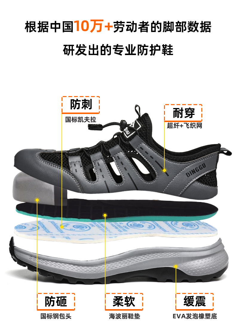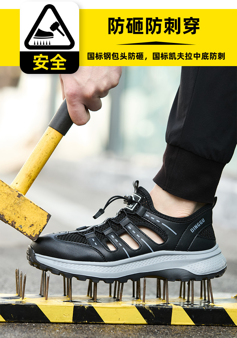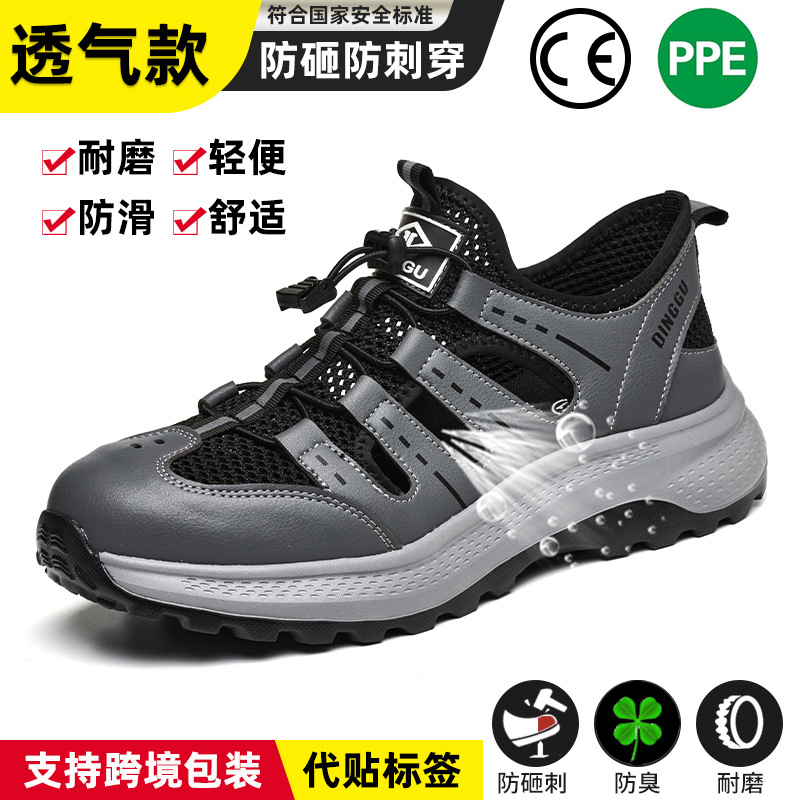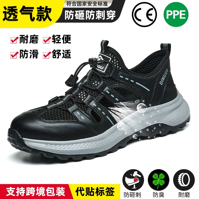 딩구 여름 노동 보호 신발 남성용 스매싱 방지 및 피어싱 방지 내마모성 신발 미끄럼 방지 통기성 경량 스틸 발가락 신발 안전 신발