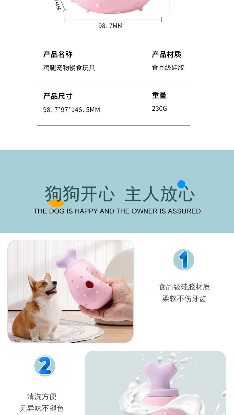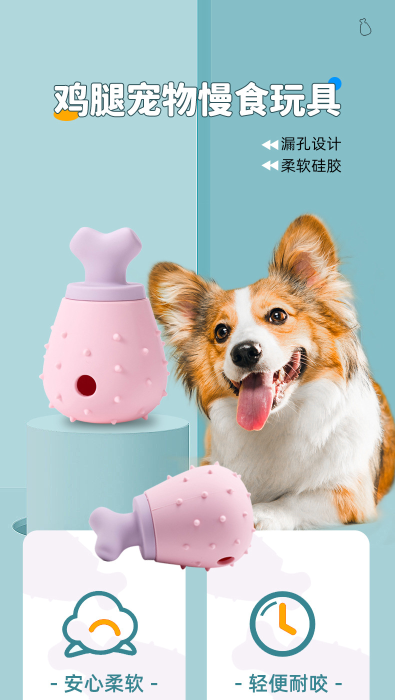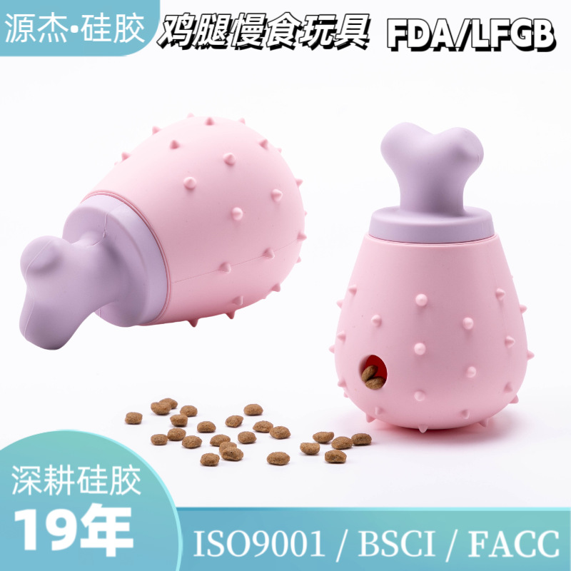 아마존 닭다리 모양 식품 등급 실리콘 애완동물 먹이 공급 장치, 느린 먹이 장난감, 고양이와 강아지용 치아갈이, 핥기, 씹기 장난감