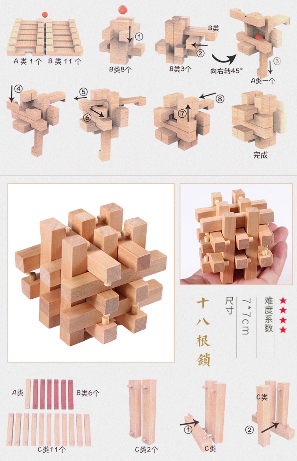 나무 구멍이 있는 쿤밍 자물쇠, 루반 공, 6개의 24자물쇠, 케이지에 보물이 들어 있는 빨간 공, 교육용 장난감 풀세트, 지능 잠금 해제스토어 가기