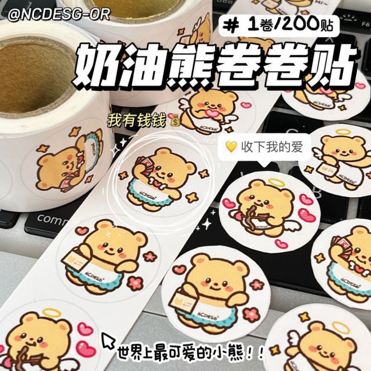 새로운 버터베어 롤 스티커, 귀엽고 멋진 인스 데코레이션 핸드북 스티커, 씰링 테이프, 학생 필수품스토어 가기