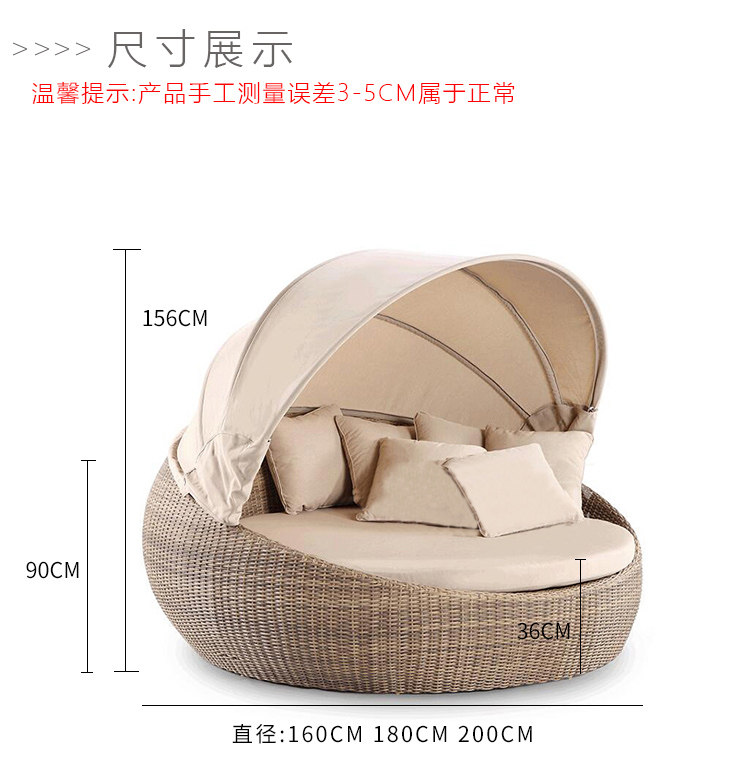 야외 등나무 라운지 코트야드 비치 라운저 방수 선 스크린 소파 침대 야외 정원 수영장 발코니 라운드 라운지스토어 가기