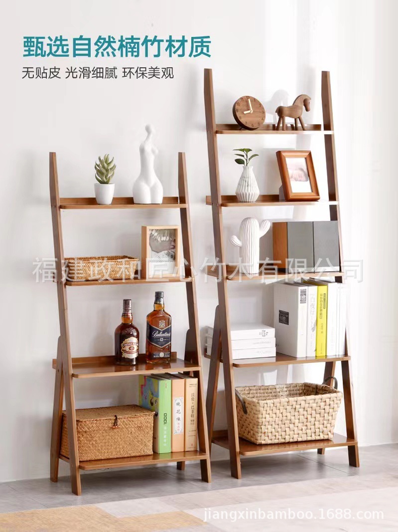 맞춤형 사다리꼴 벽걸이 책장, 대나무 거실 다층 대나무 선반, 바닥에서 천장까지 꽃 선반, 원목 선반, 공장 직접 판매스토어 가기