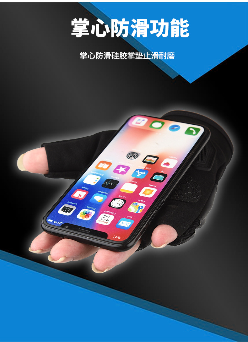 • 파란색 반손가락 강철 쉘 낙하 방지 오토바이 장갑