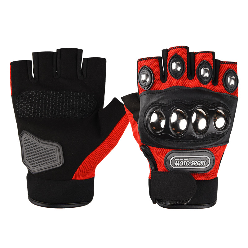 • 빨간색 반손가락 강철 쉘 추락 방지 오토바이 장갑