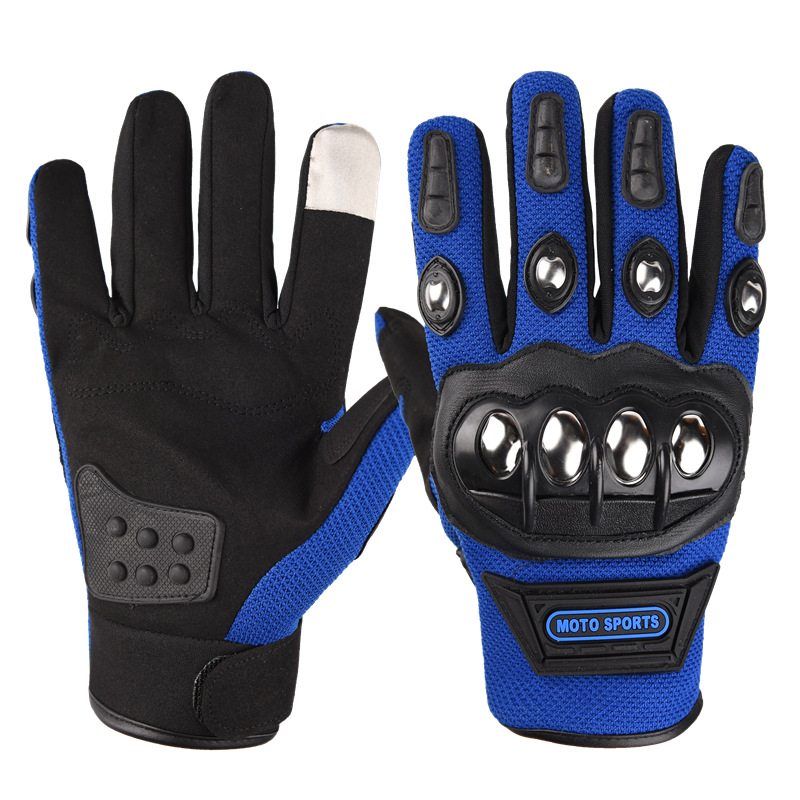 • 블루 풀 핑거 스틸 쉘 낙하 방지 오토바이 장갑
