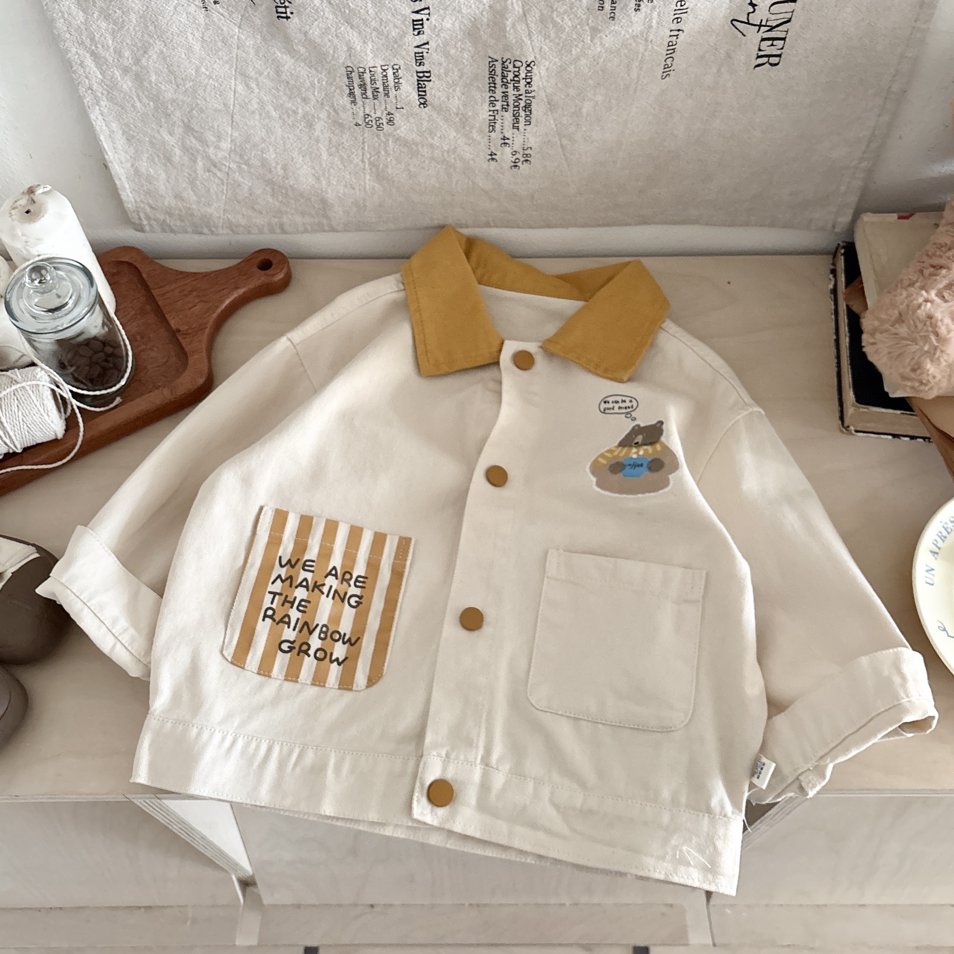 소년의 봄과 여름 옷깃 컬러 블록 코트 2025 새로운 어린이 만화 인쇄 코트 아기의 귀여운 재킷 탑스토어 가기