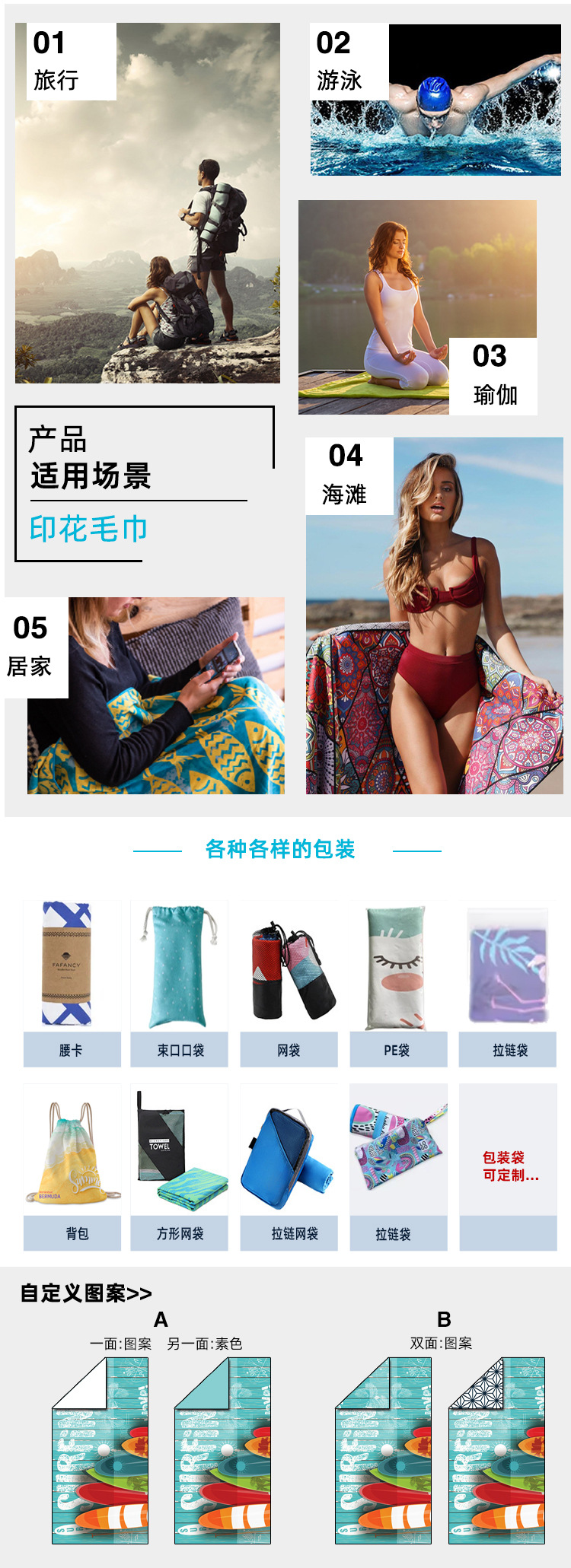 크로스보더 비치 타월 흡수성 스포츠 프린트 극세사 양면 벨벳 수영 서핑 비치 타월 프린트 디자인스토어 가기