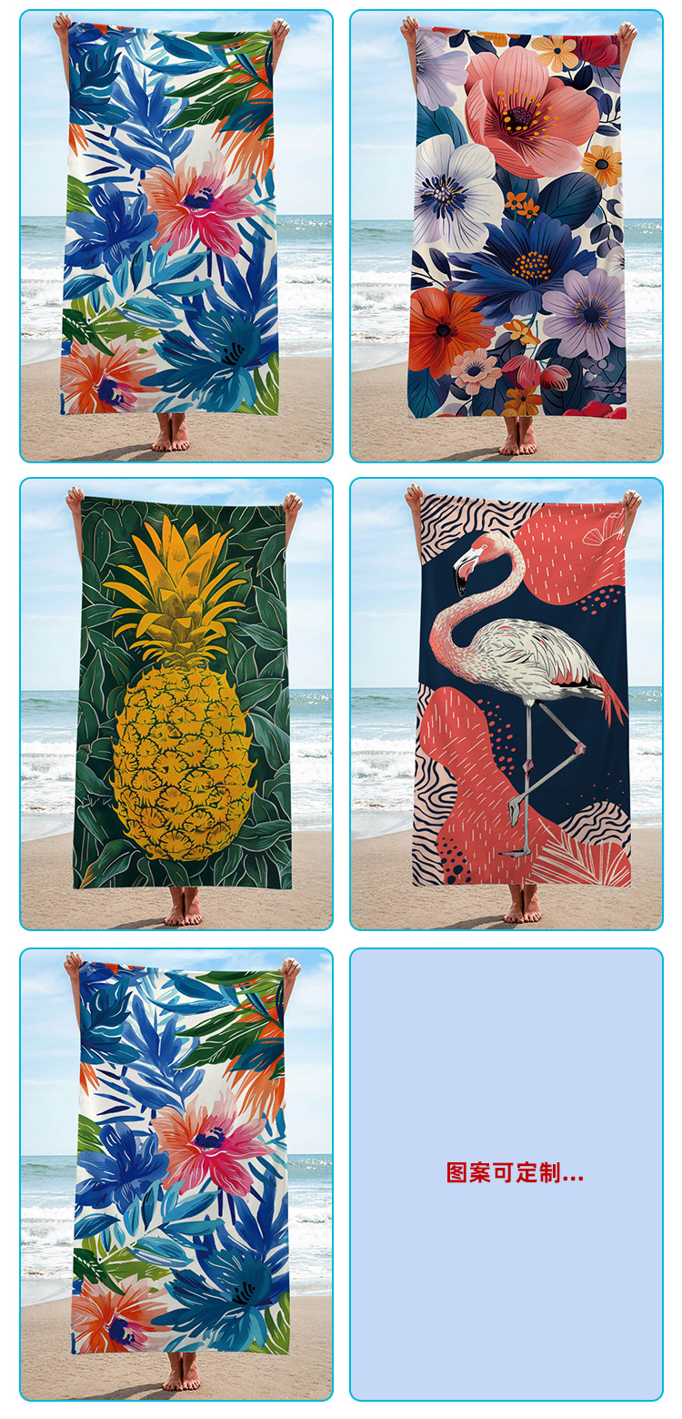 크로스보더 비치 타월 흡수성 스포츠 프린트 극세사 양면 벨벳 수영 서핑 비치 타월 프린트 디자인