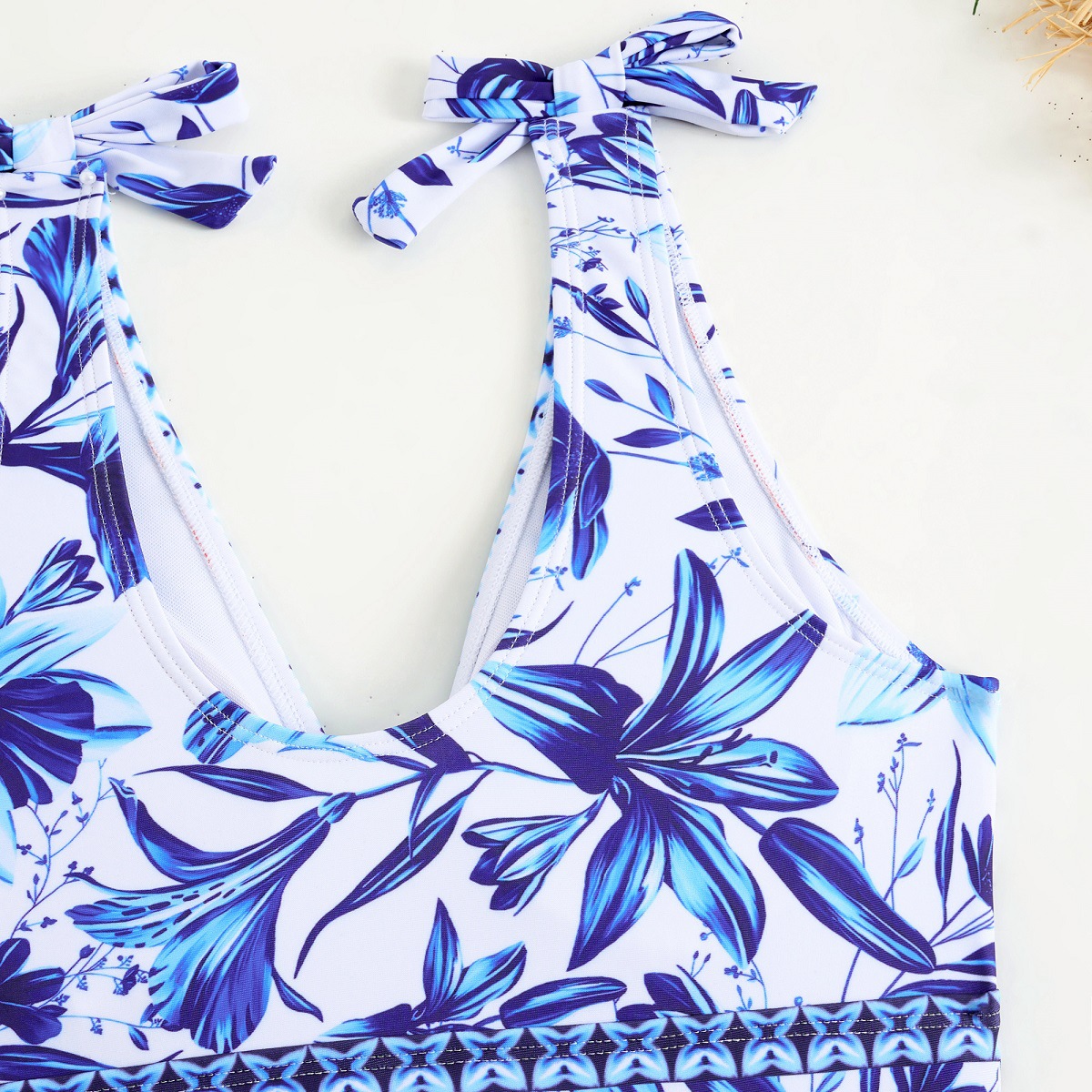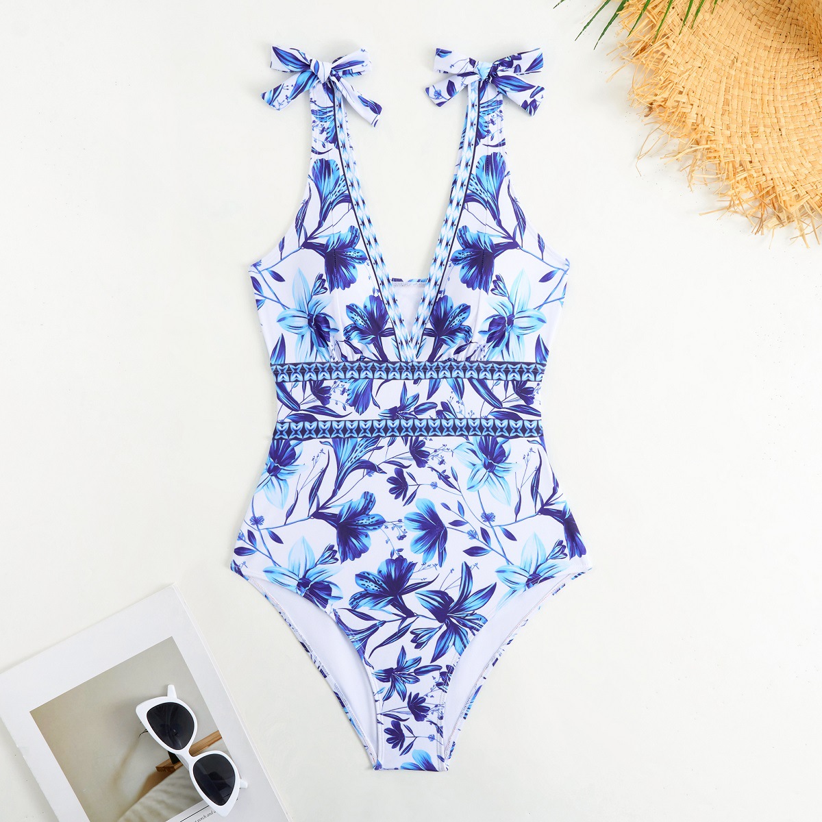 2025 유럽과 미국의 새로운 원피스 투피스 수영복 여성 복고풍 프린트 패션 섹시한 v 넥 스커트 슈트 수영복스토어 가기