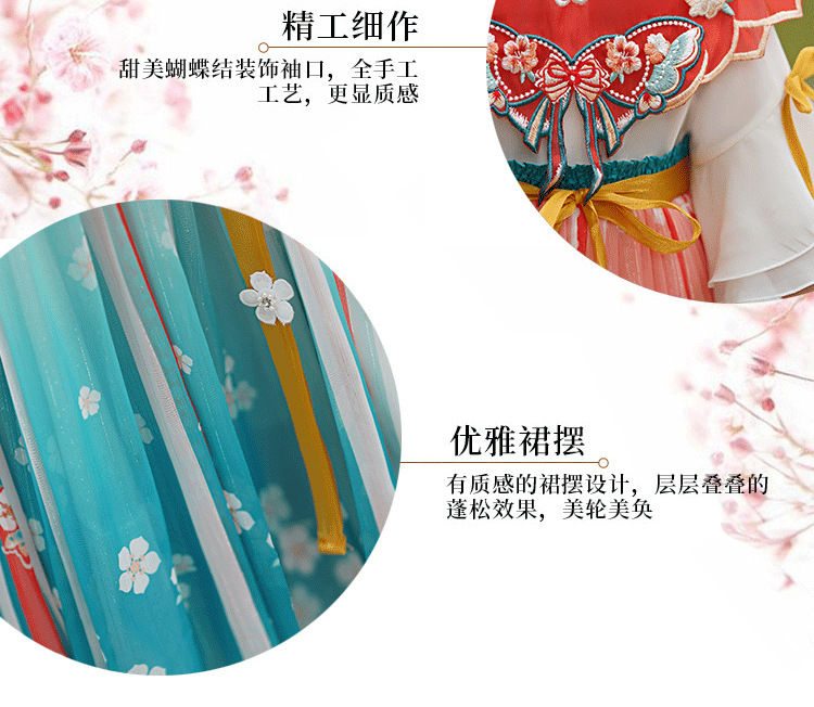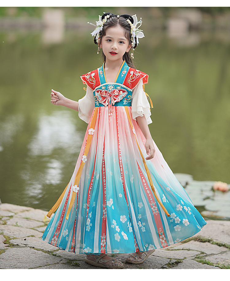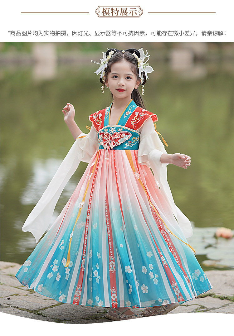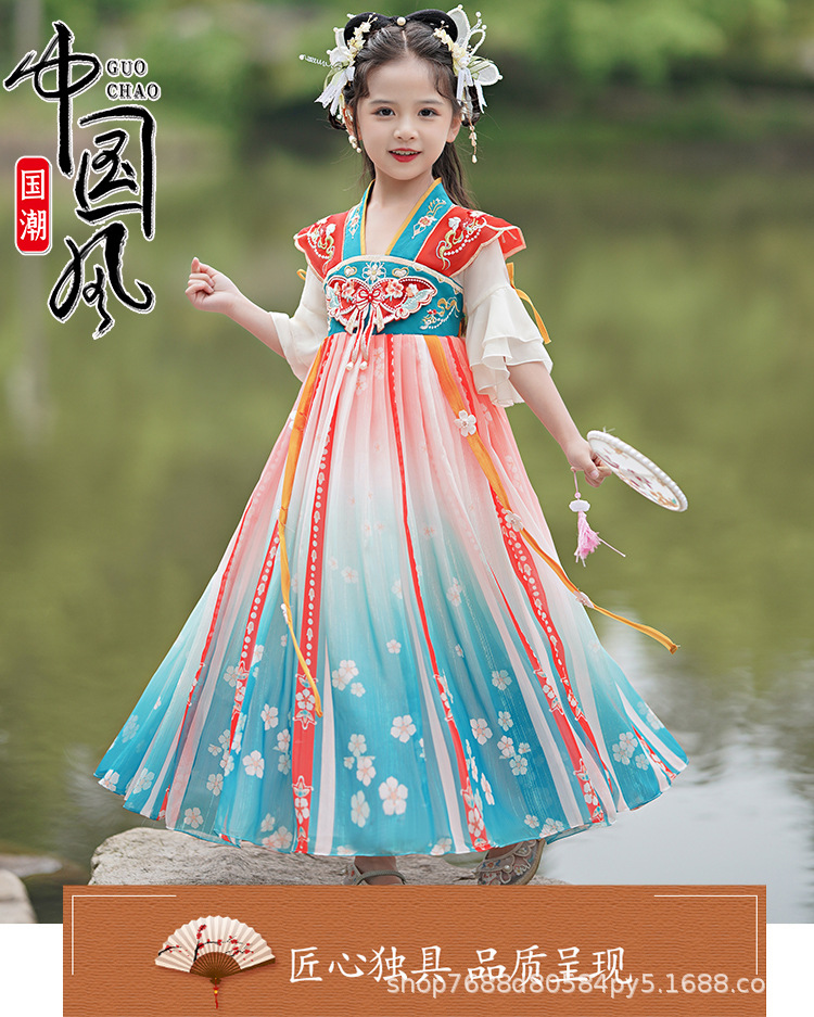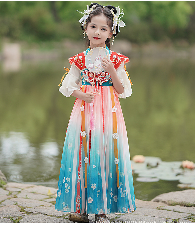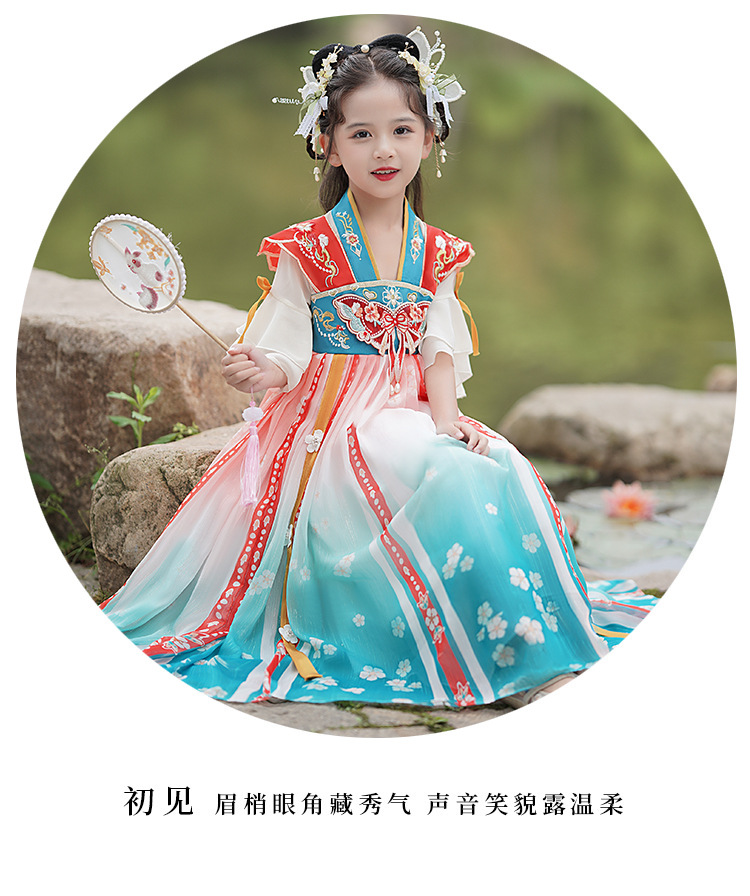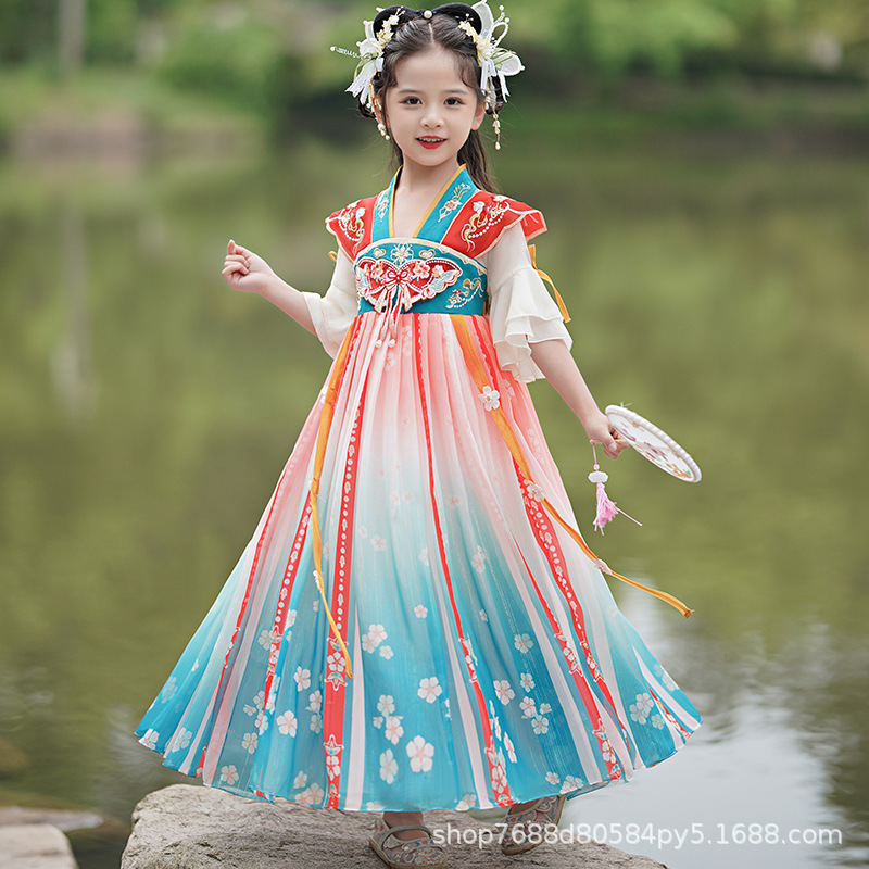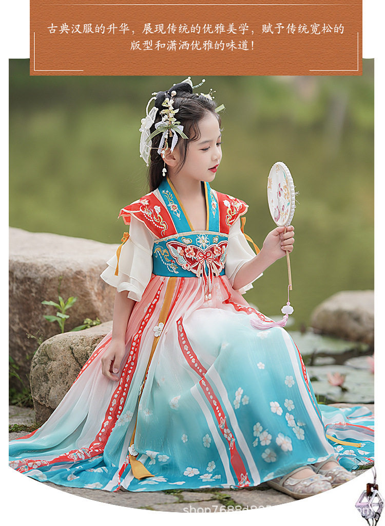 Hanfu Girls 2025 새로운 봄, 가을 개선 된 Ruqipu 어린이 중국 스타일 고대 의상 공연 의상 소녀 고대 스타일 당나라 정장