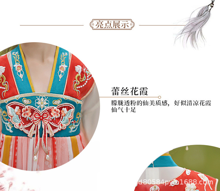Hanfu Girls 2025 새로운 봄, 가을 개선 된 Ruqipu 어린이 중국 스타일 고대 의상 공연 의상 소녀 고대 스타일 당나라 정장스토어 가기
