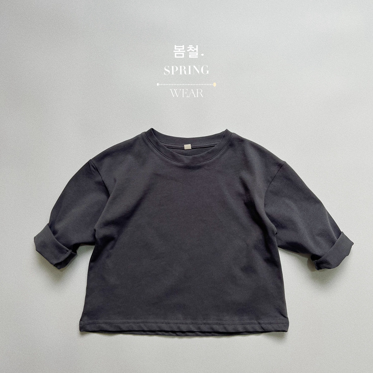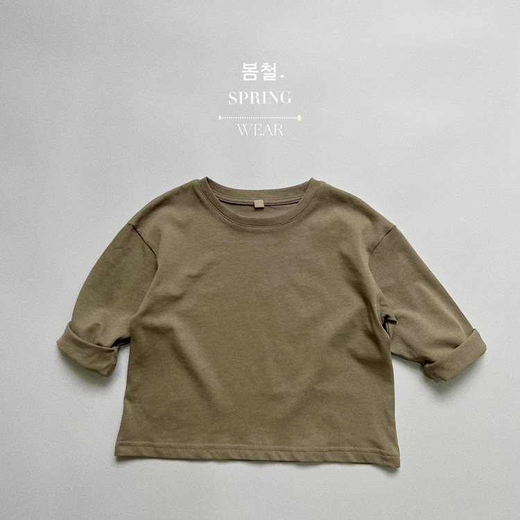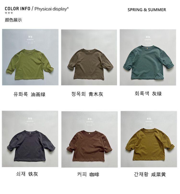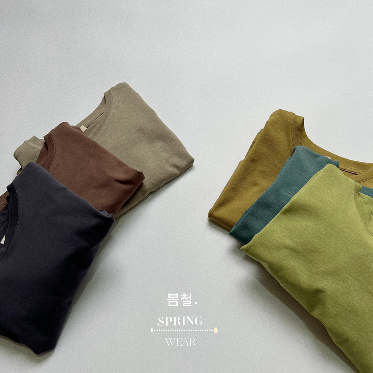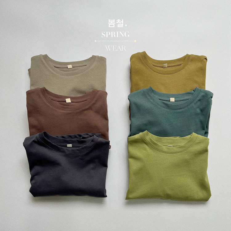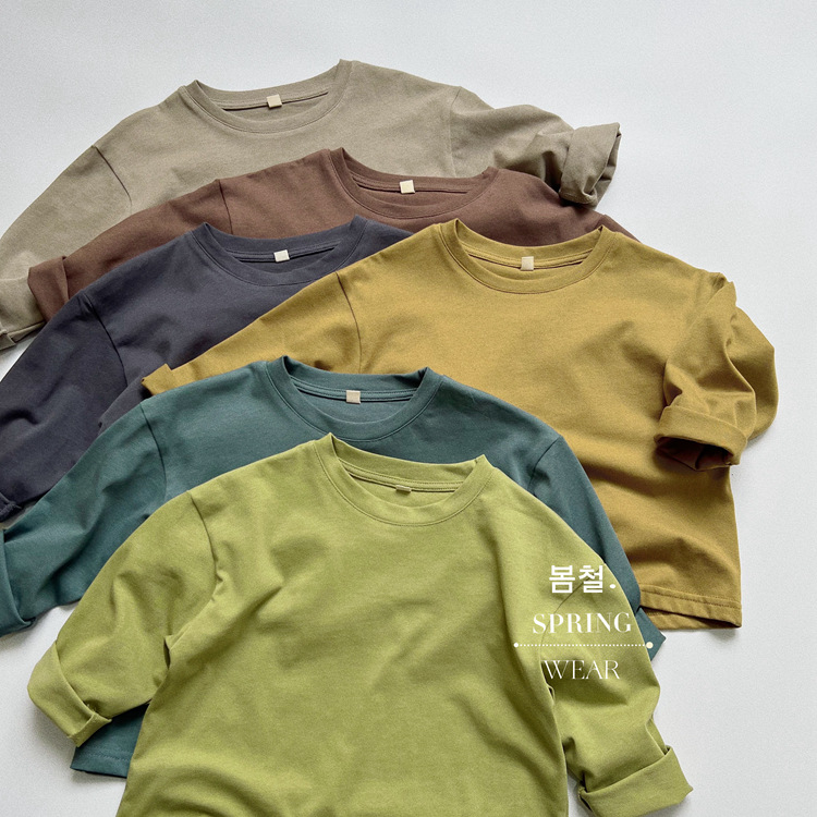 모란디 컬러베이스 한국식 어린이 순면 티셔츠 봄 · 가을 새 소년과 소녀 스타일 긴 소매 티셔츠 베이스스토어 가기