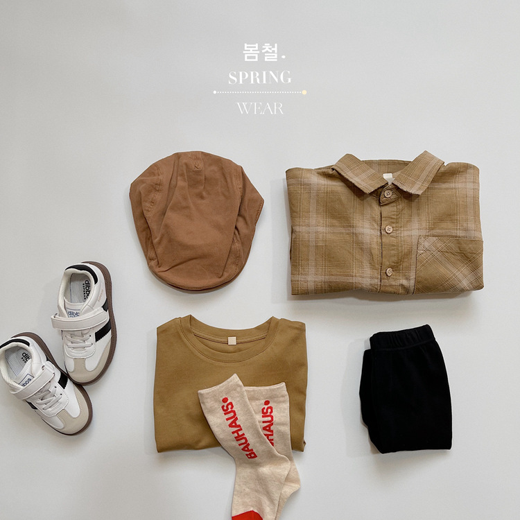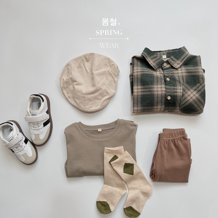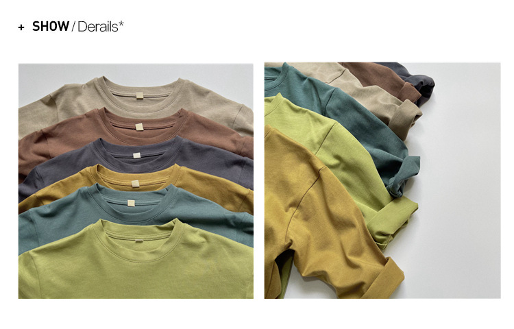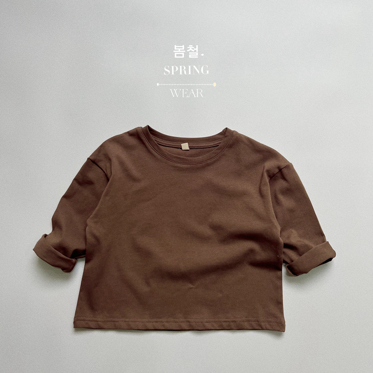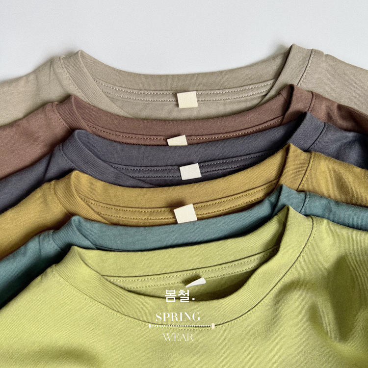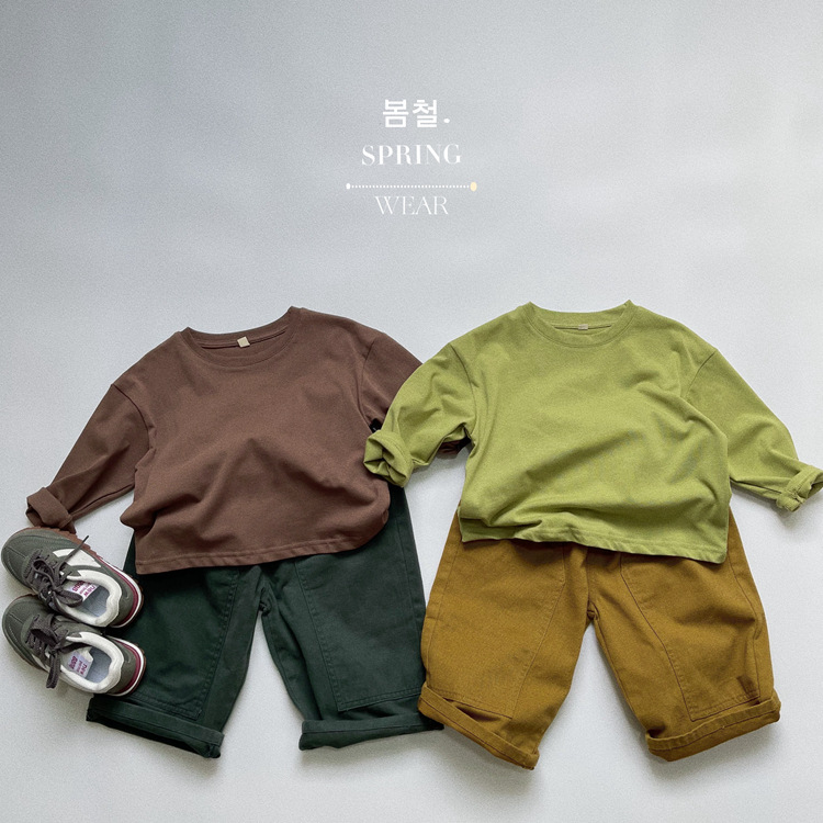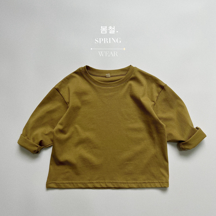 모란디 컬러베이스 한국식 어린이 순면 티셔츠 봄 · 가을 새 소년과 소녀 스타일 긴 소매 티셔츠 베이스스토어 가기