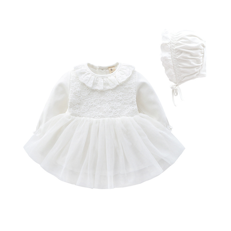 봄과 가을 긴팔 공주 드레스, 여자 아기 드레스, 투투 스커트, 신생아 흰색 레이스 거즈 스커트, 베이비 드레스