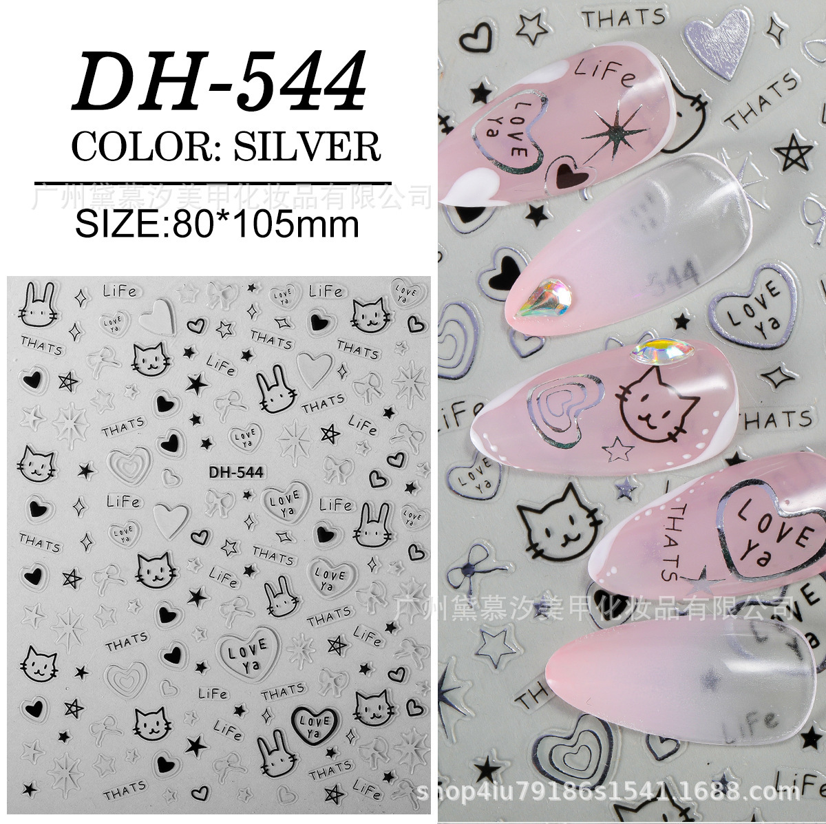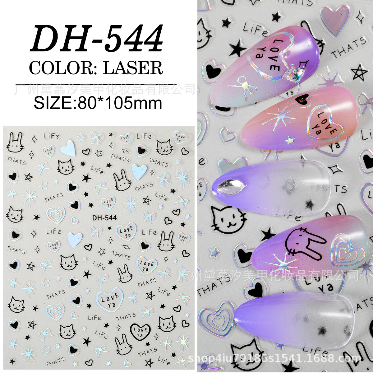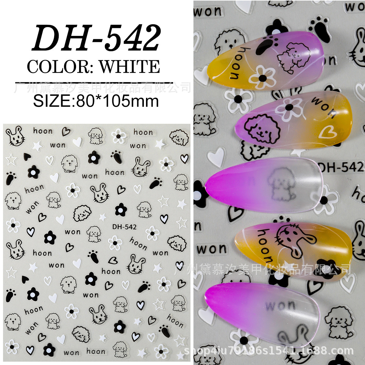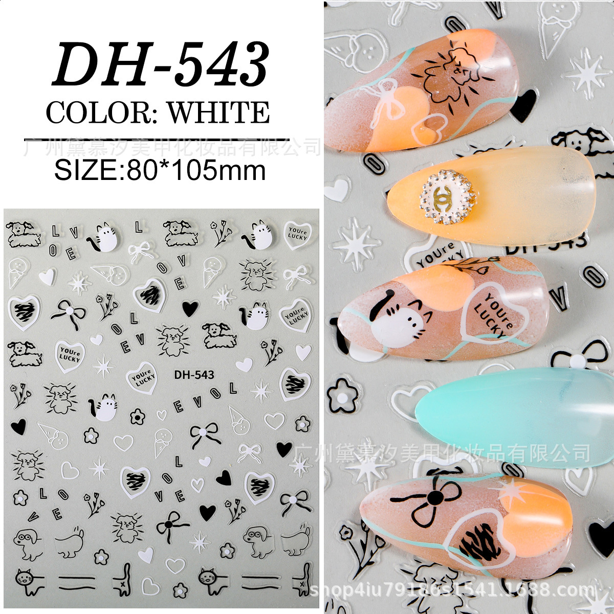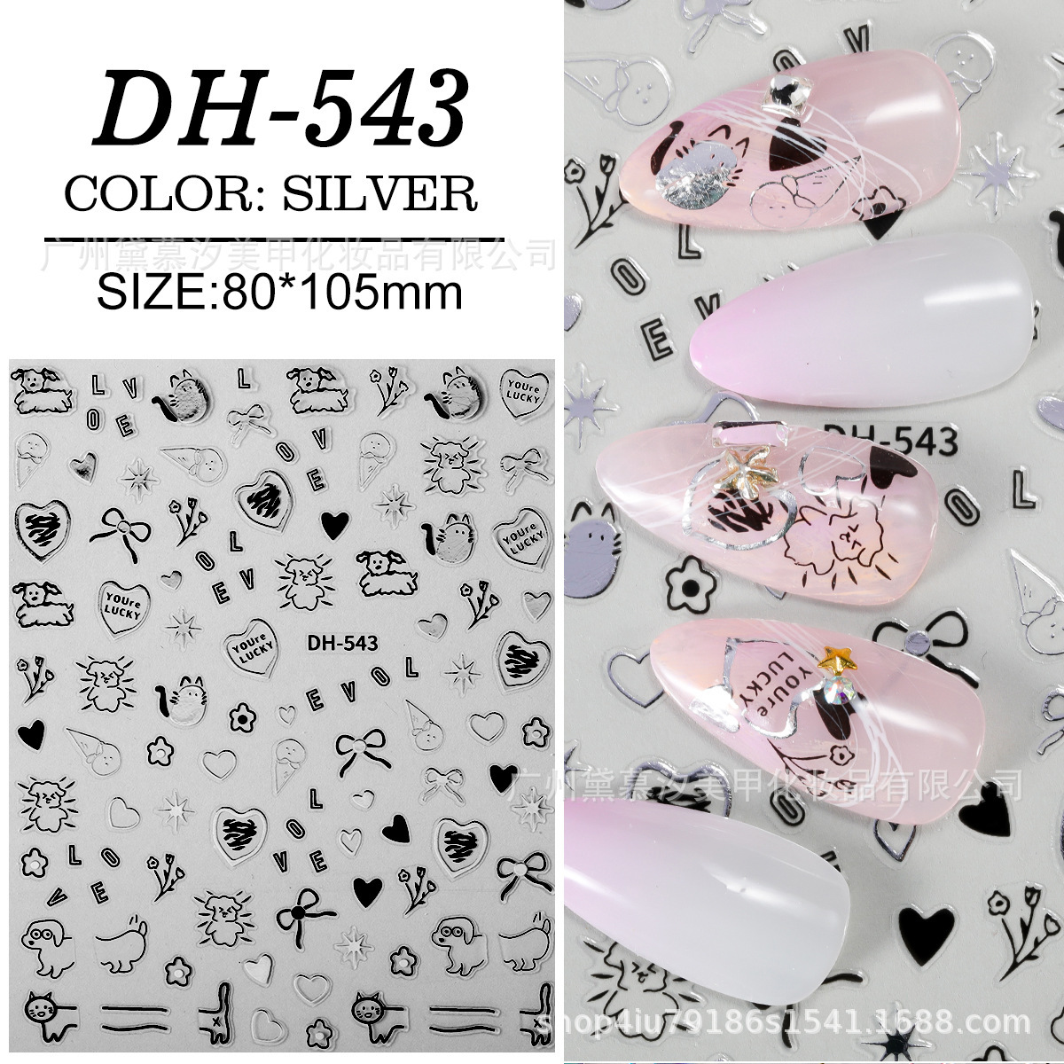 대외 무역 폭발 달콤한 쿨 네일 아트 스티커 귀여운 만화 고양이와 개 사랑 작은 패턴 어린이 재미 낙서 3D 접착제스토어 가기