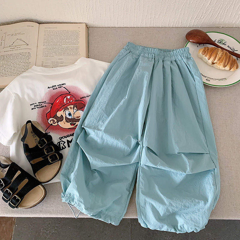 아동 여름 바지 2025 새로운 한국 스타일 아동 의류 소년 패션 작업복 야마모토 바지 아기 스타일 캐주얼 바지스토어 가기