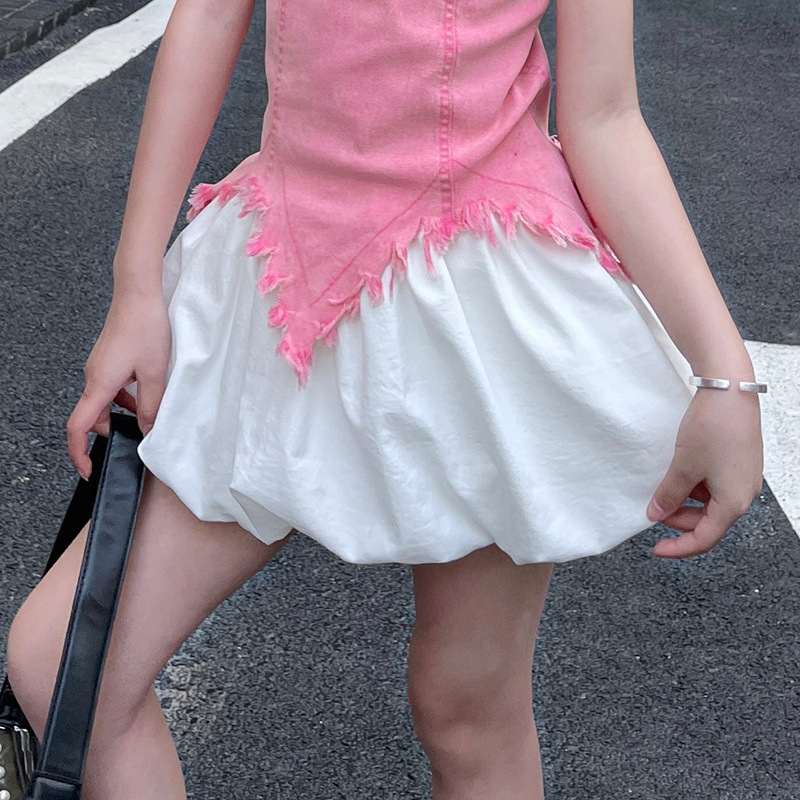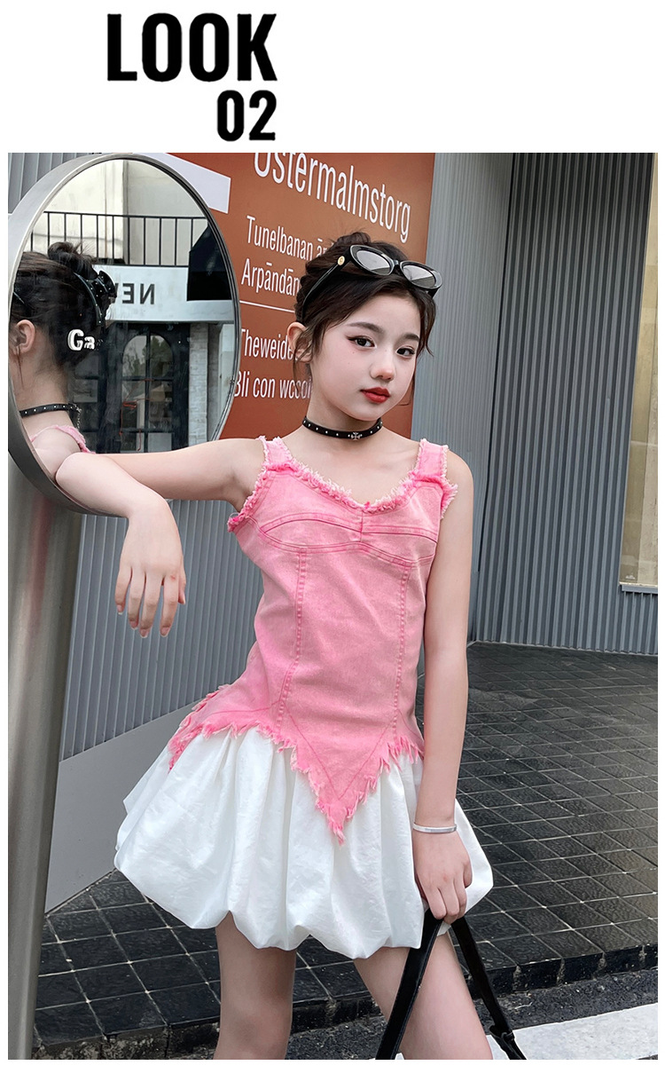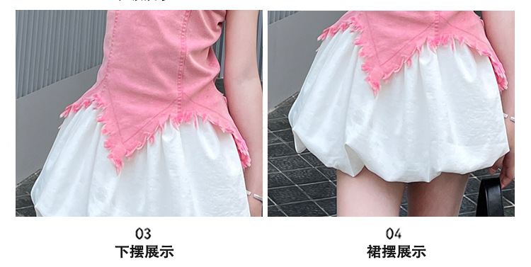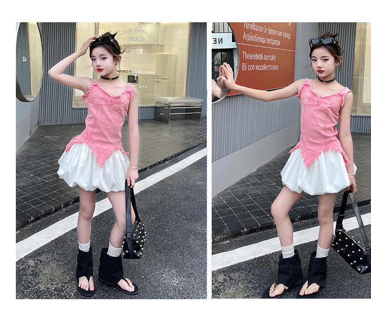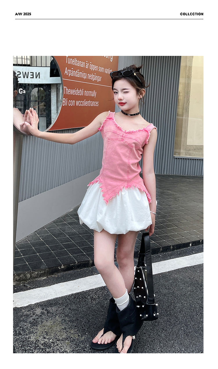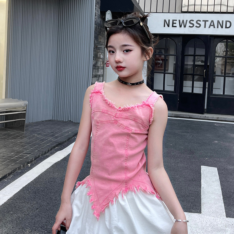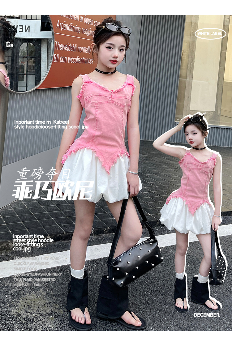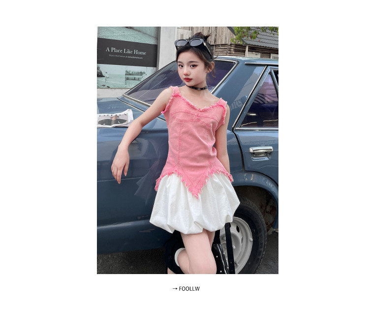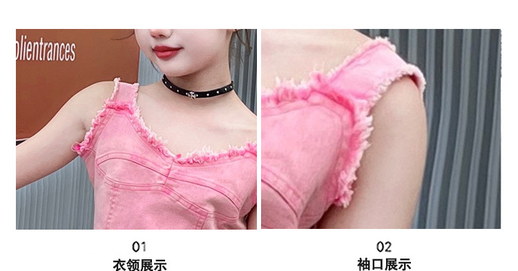 여자 여름 세트 2025 새로운 스타일 스파이스 소녀 랩 데님 카미 솔 여성 여름 술 디자인 톱 세트스토어 가기