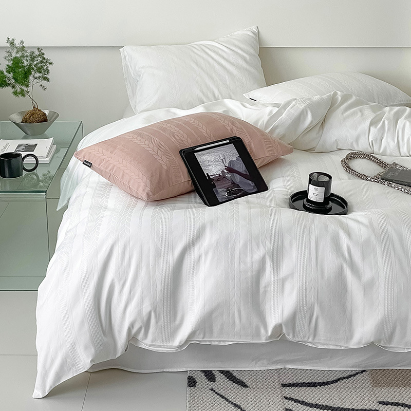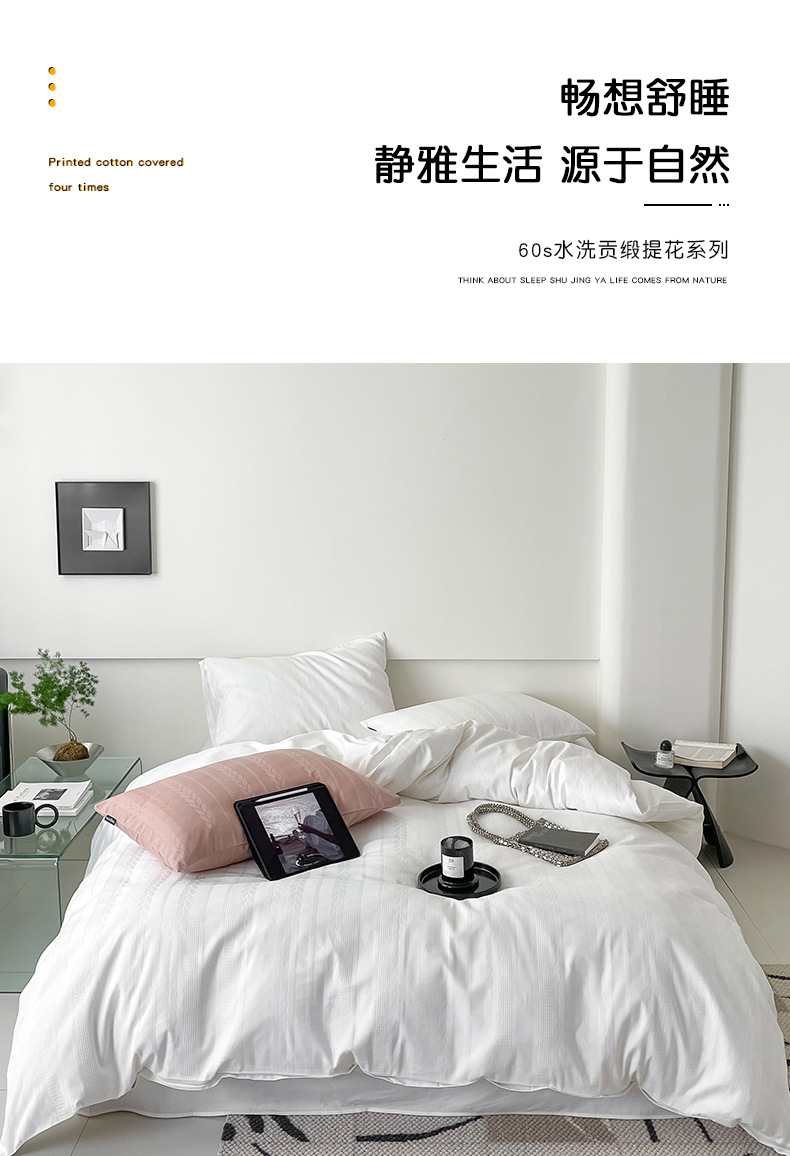 60S 순면 4종 세트 엄마와 아기 A급 면 새틴 자카드 3종 세트 작은 향기로운 이불 커버 시트 침구