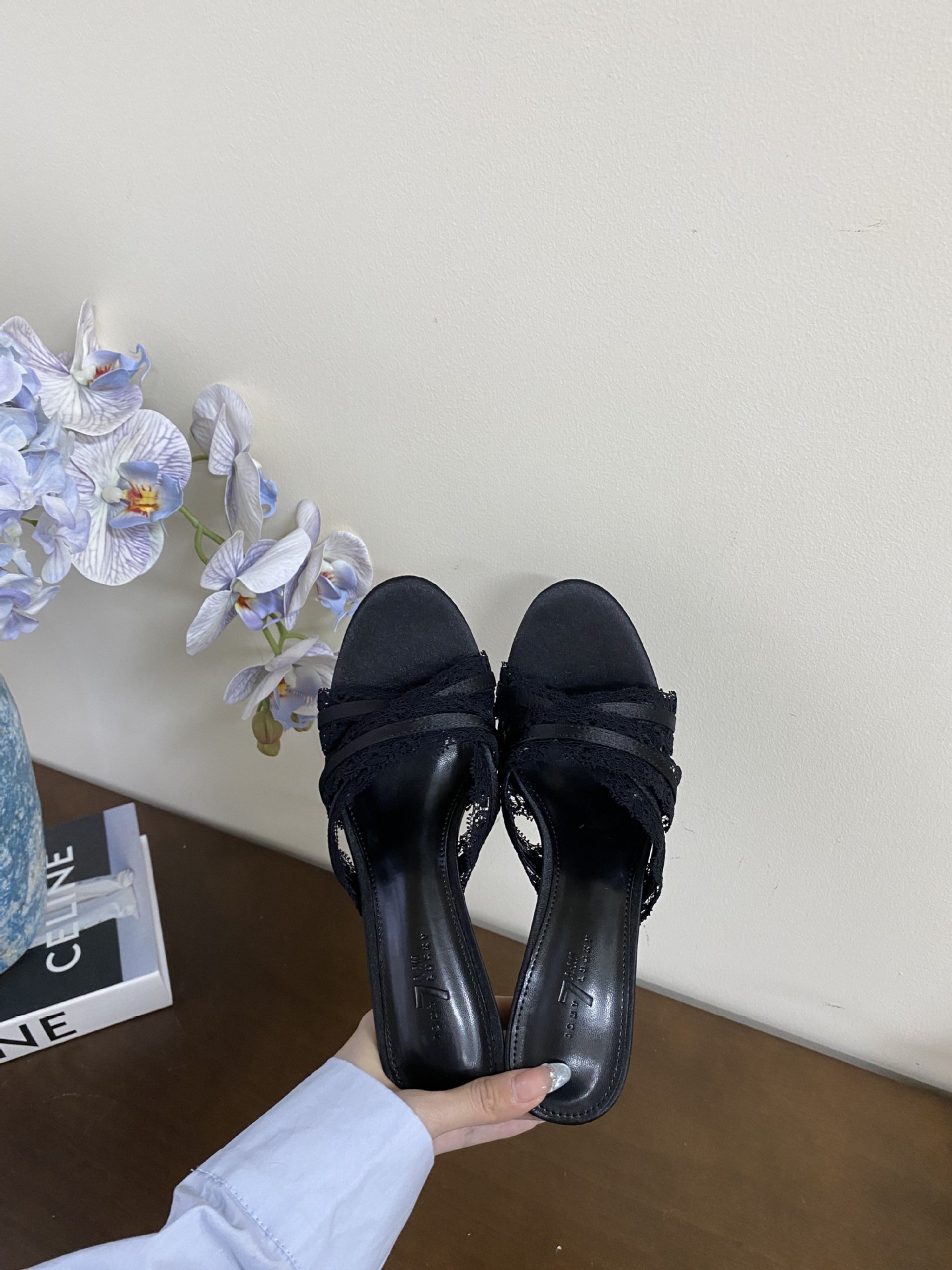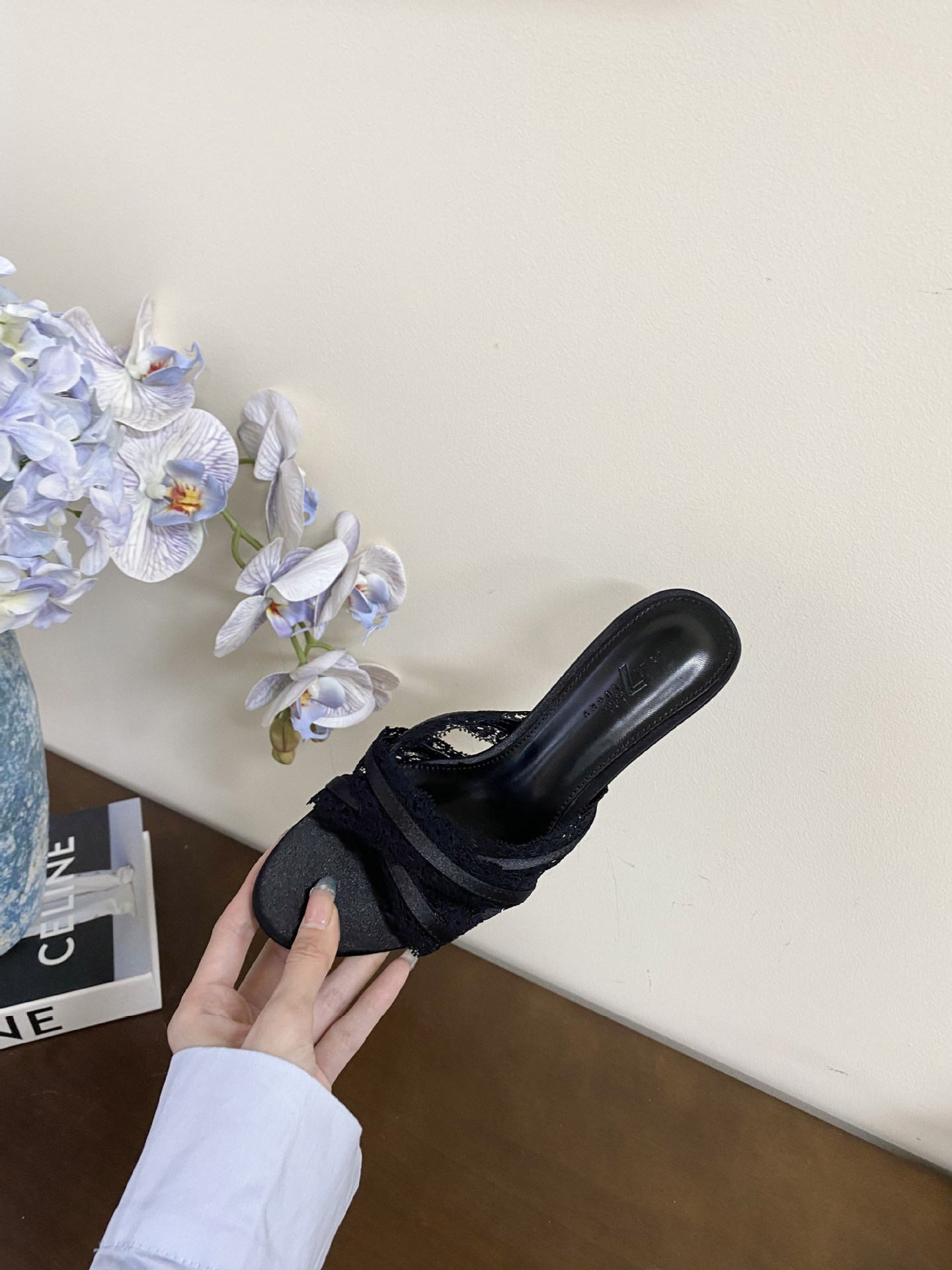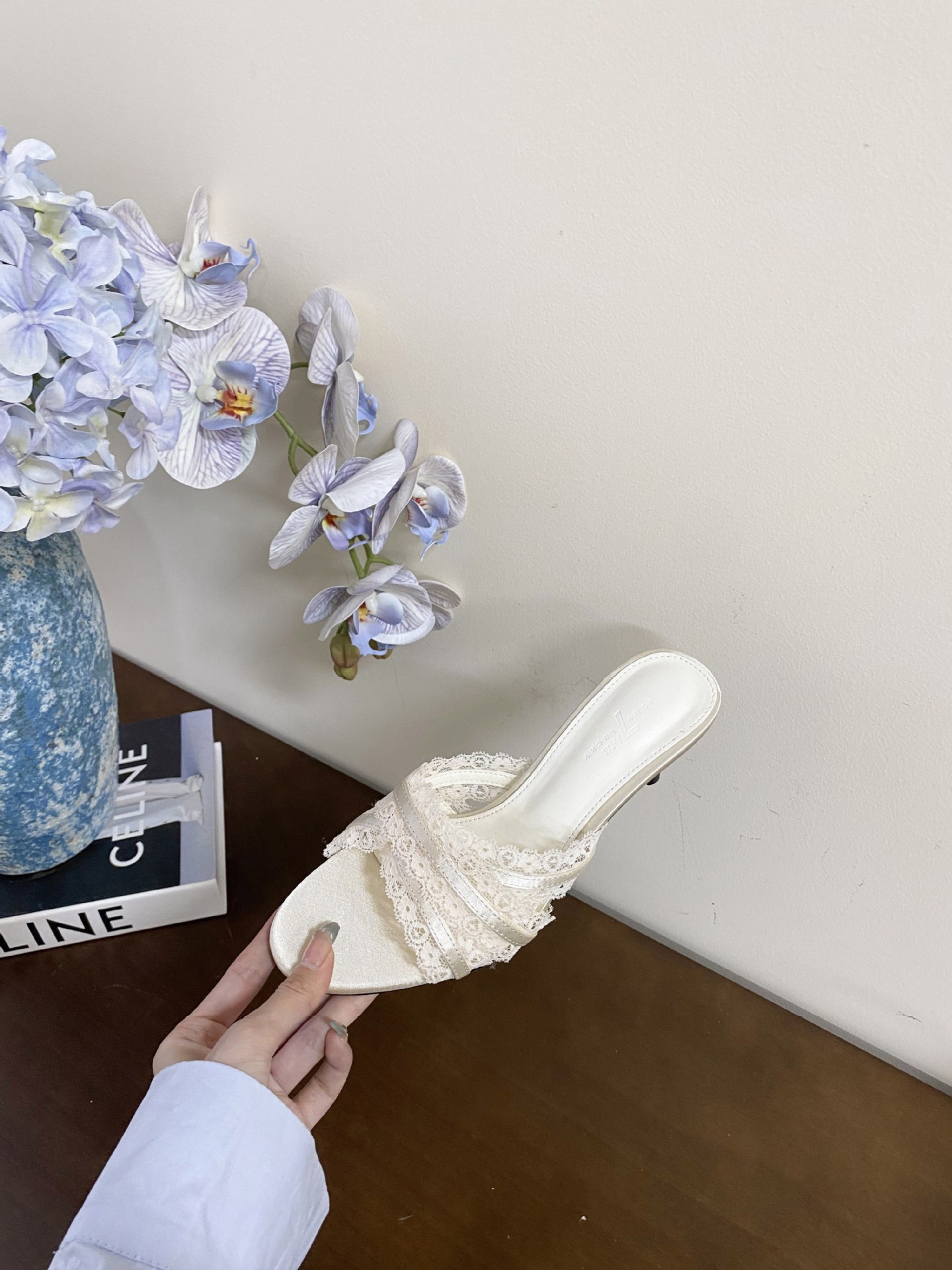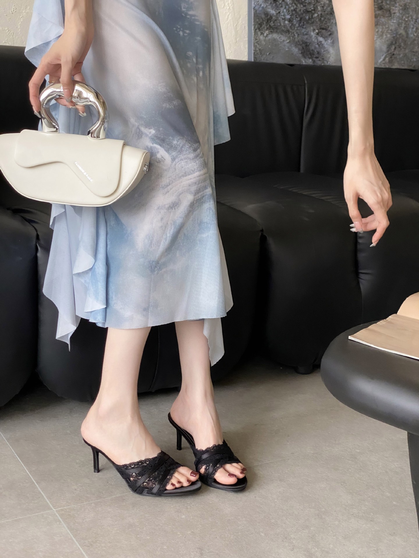 2025 봄 신상 라운드 토 스틸레토 하이힐, 슬림한 프렌치 패션, 섹시하고 아름다운 오픈 토 여성 슬리퍼스토어 가기