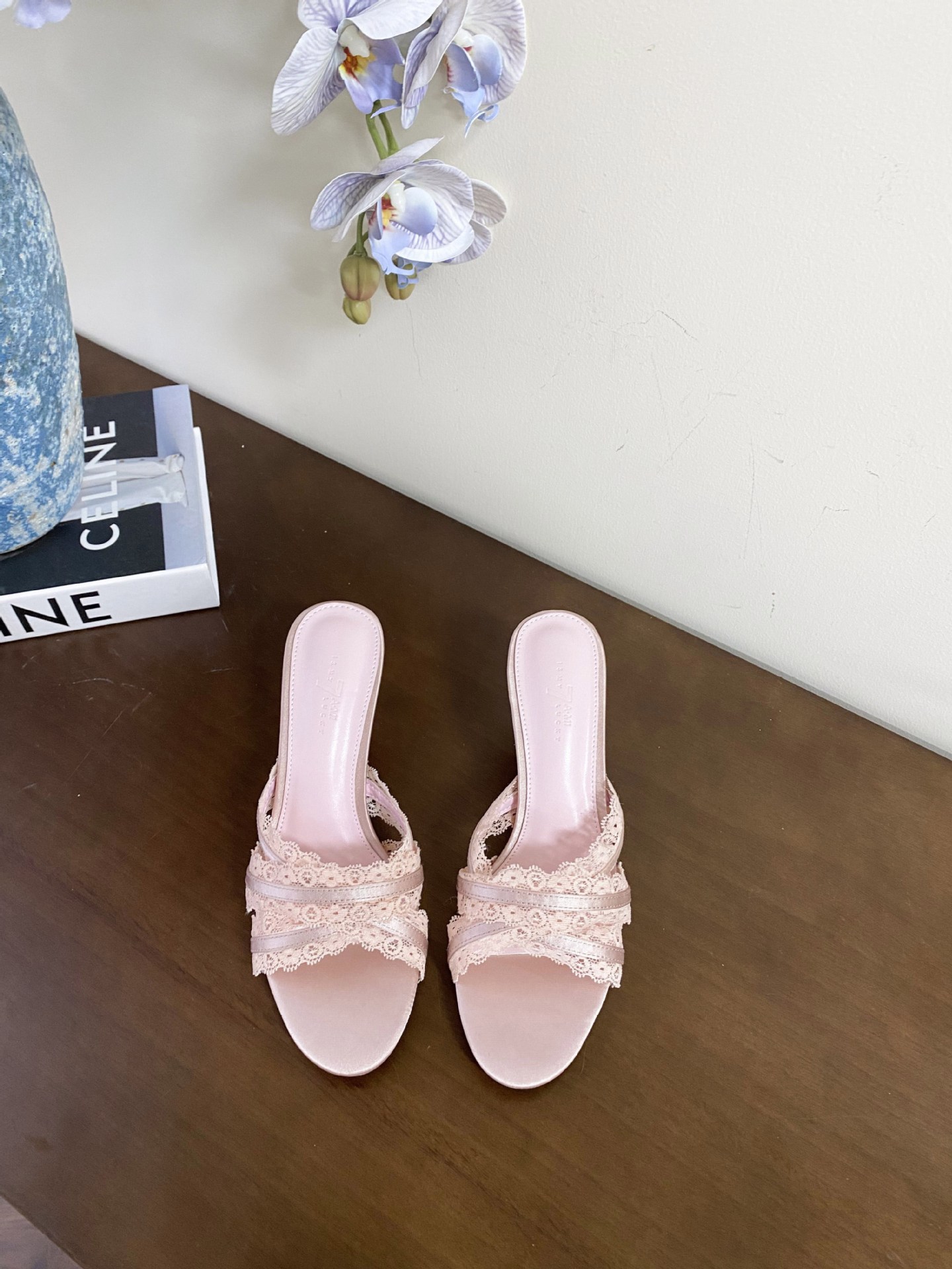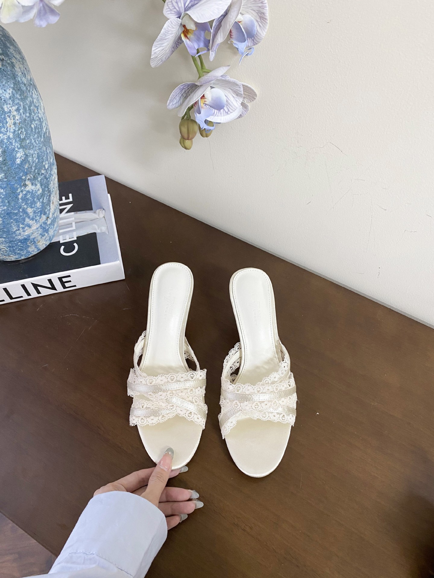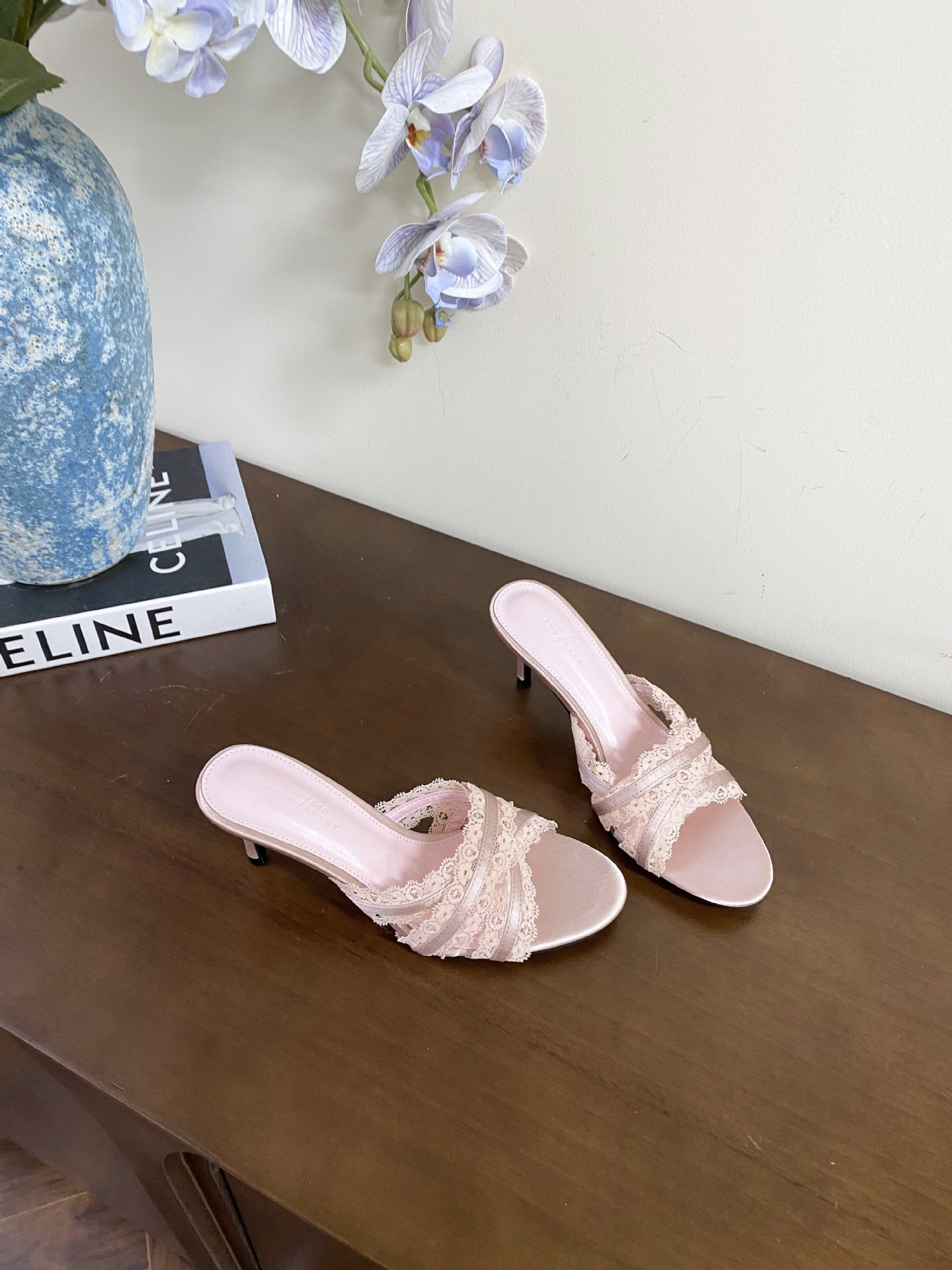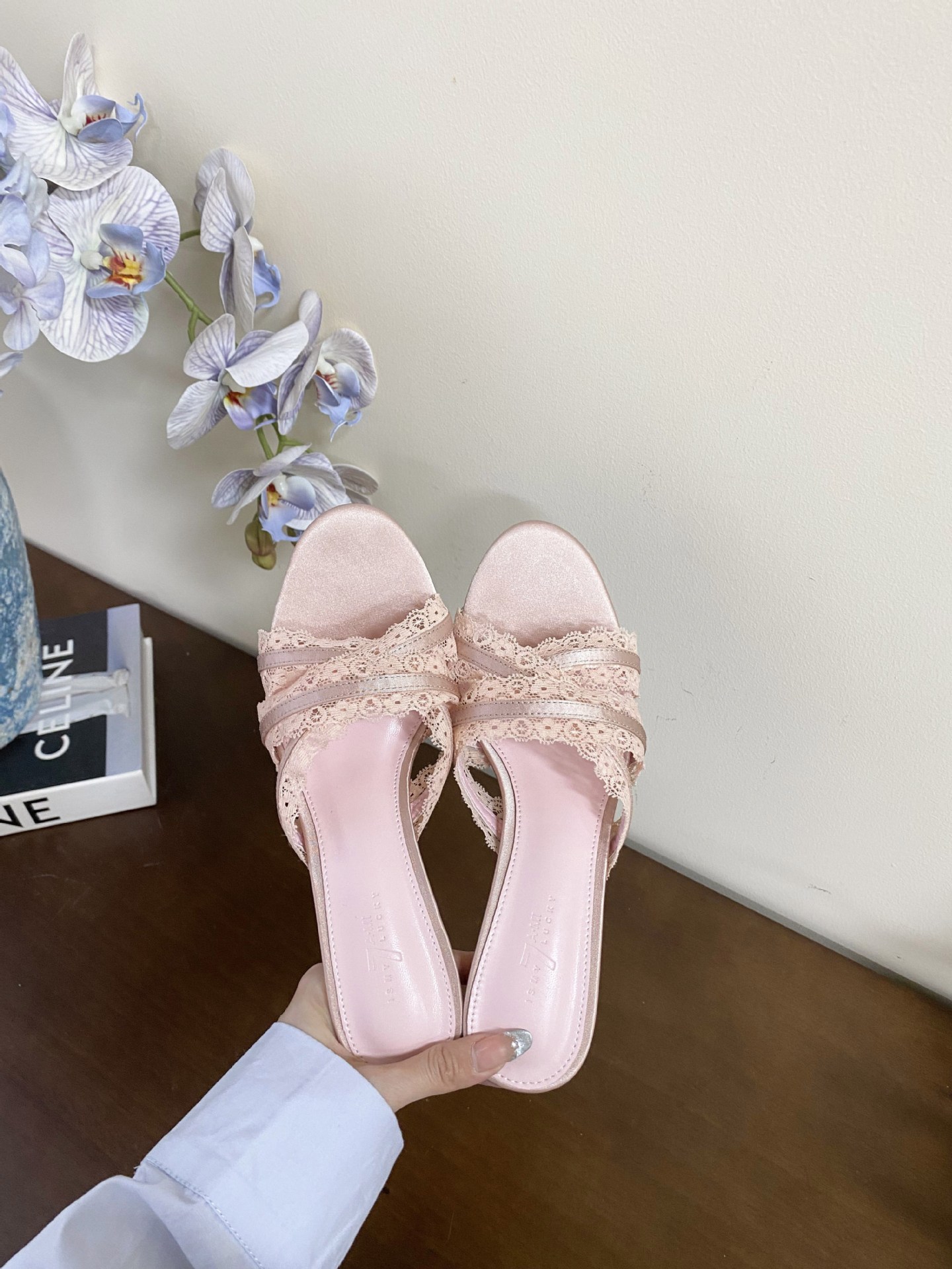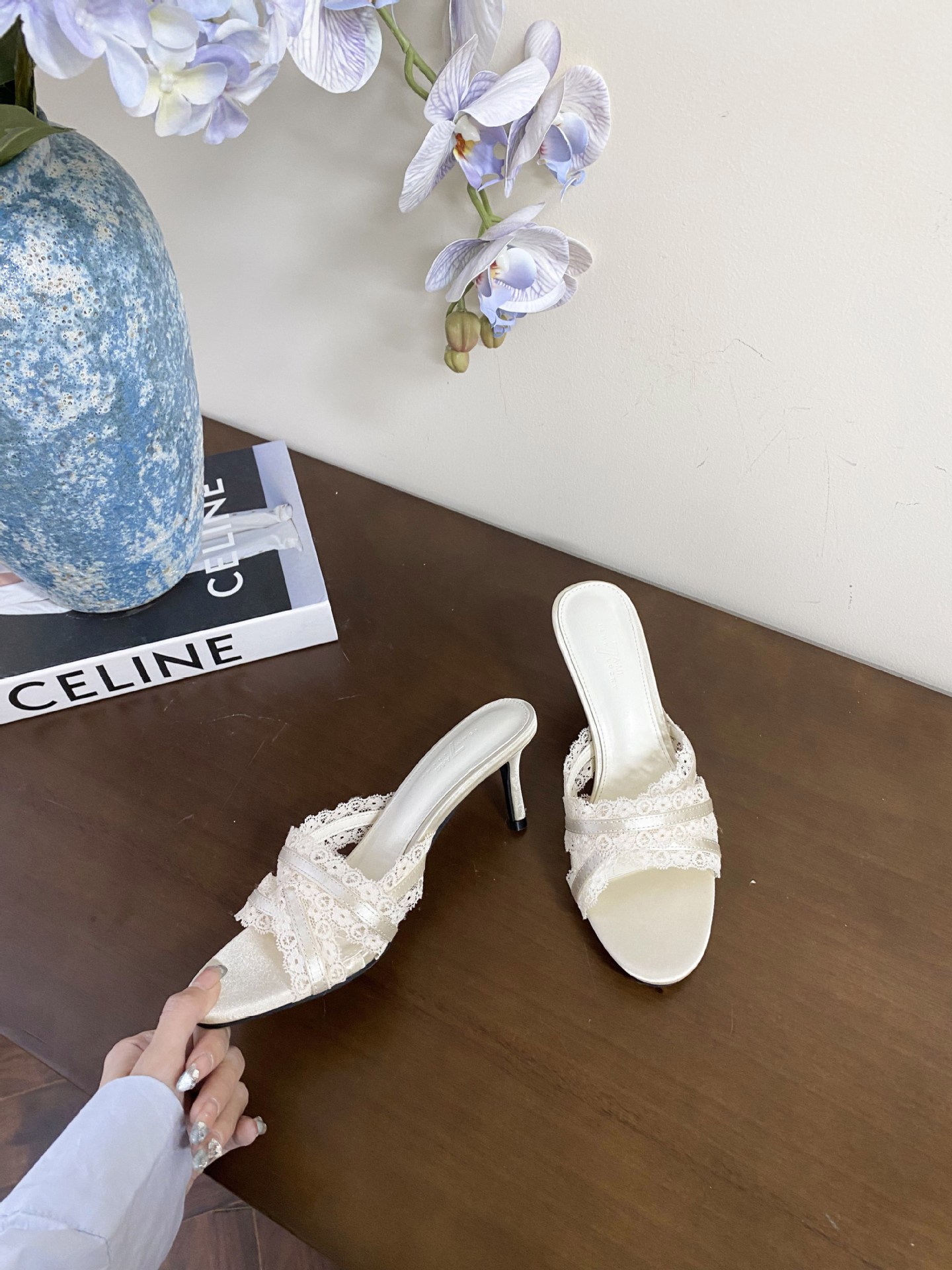 2025 봄 신상 라운드 토 스틸레토 하이힐, 슬림한 프렌치 패션, 섹시하고 아름다운 오픈 토 여성 슬리퍼스토어 가기