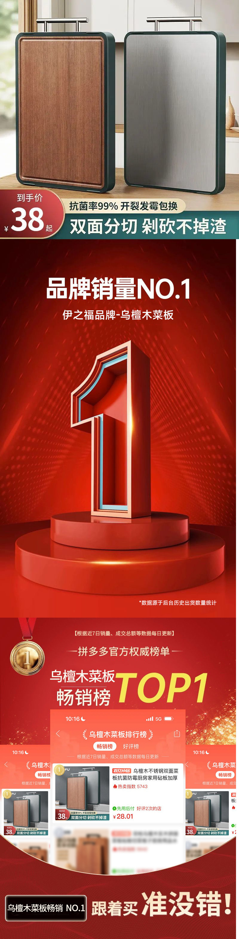 새로운 흑단 스테인레스 스틸 양면 도마, 항균 및 곰팡이 방지 주방 가정용 도마, 두껍고 절단 및 부스러기 방지스토어 가기