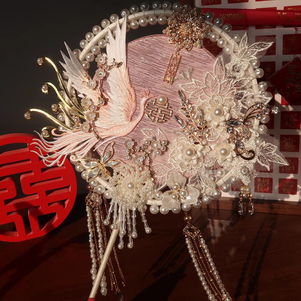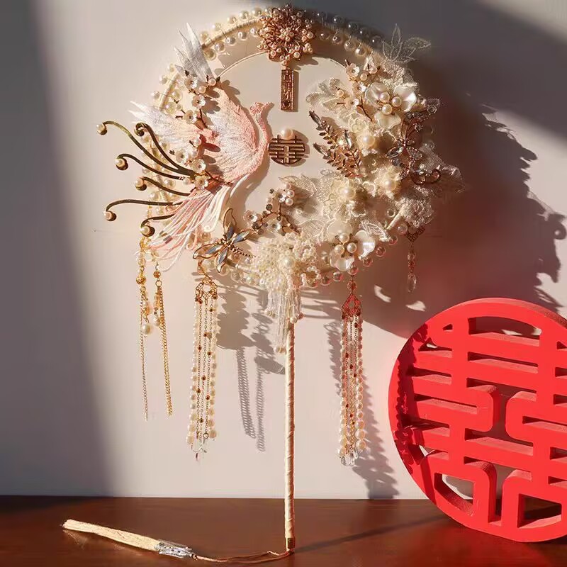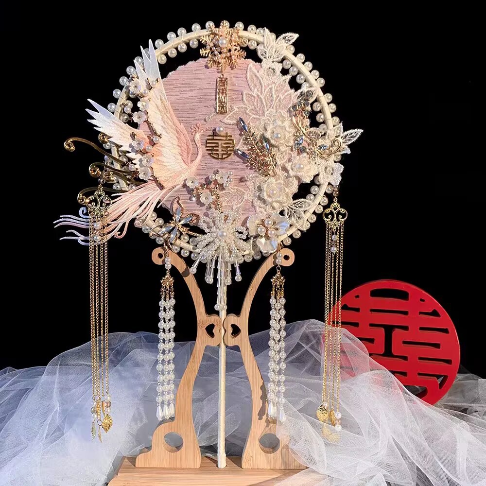 중국 신부 웨딩 팬 웨딩 Xiuhe 의류 diy 소재 가방 중공업 양면 완성 수제 고급 해피 팬