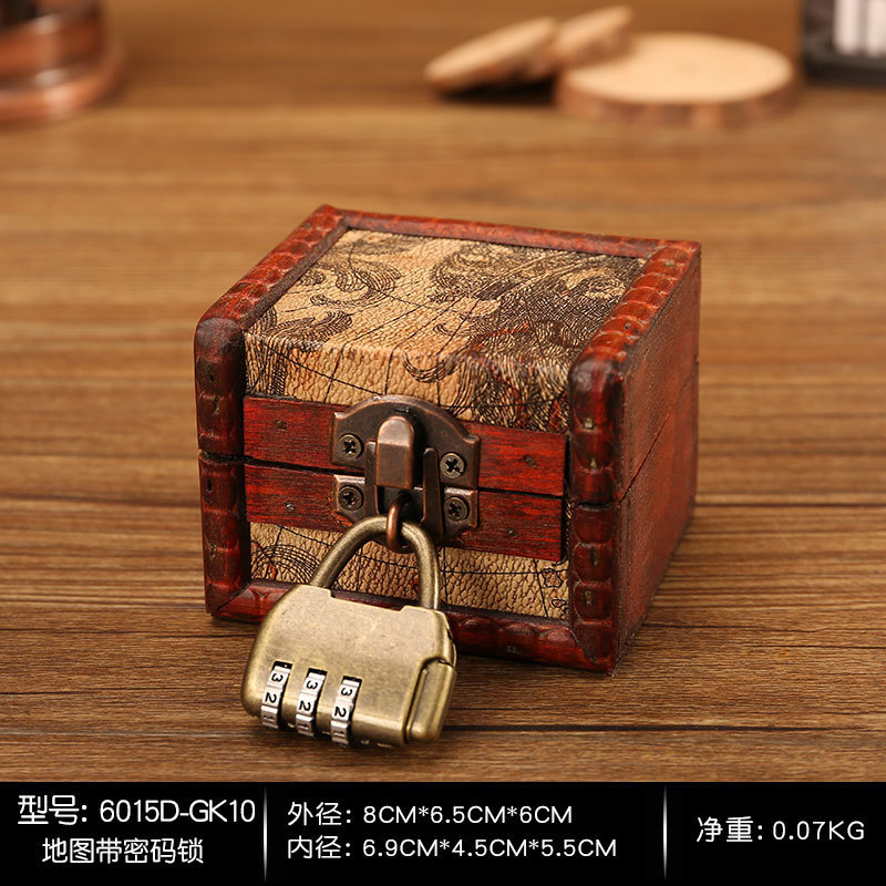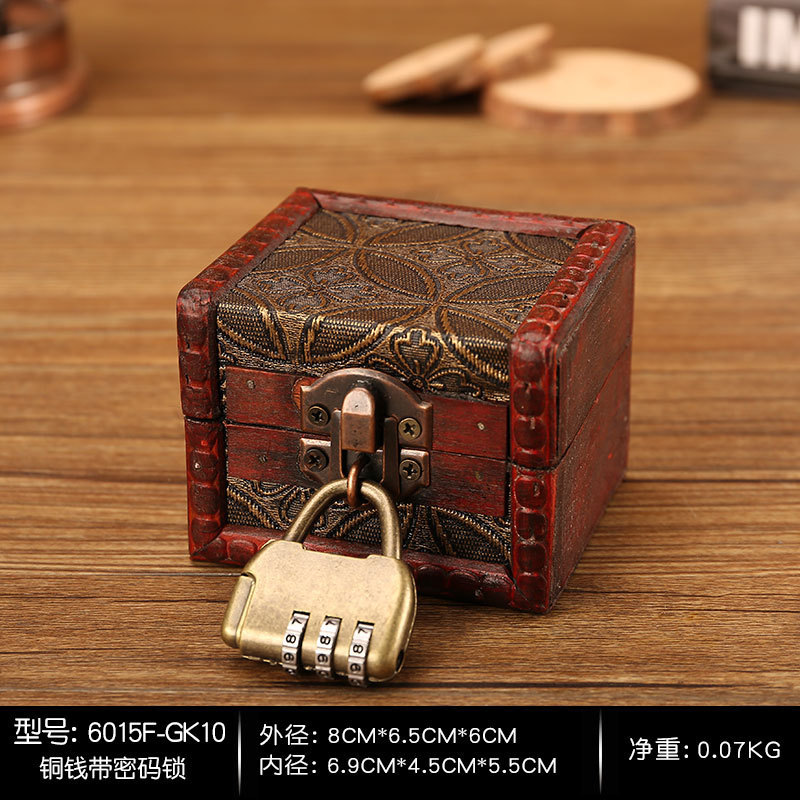 복고풍 스타일 반지 상자 미니 휴대용 나무 상자 광장 저장 상자 자물쇠 광장 암호 작은 상자 보석 상자스토어 가기