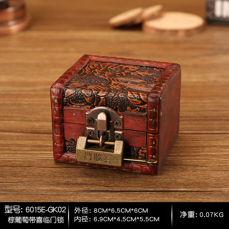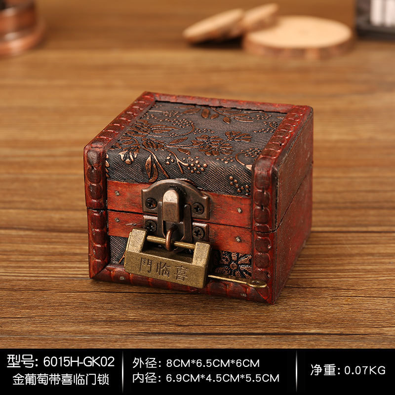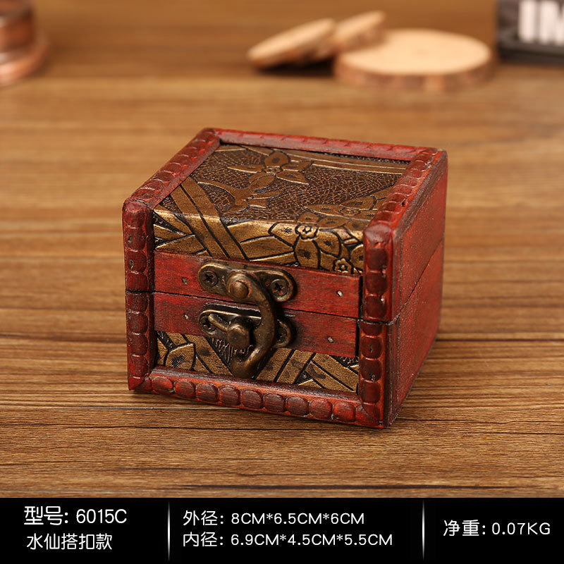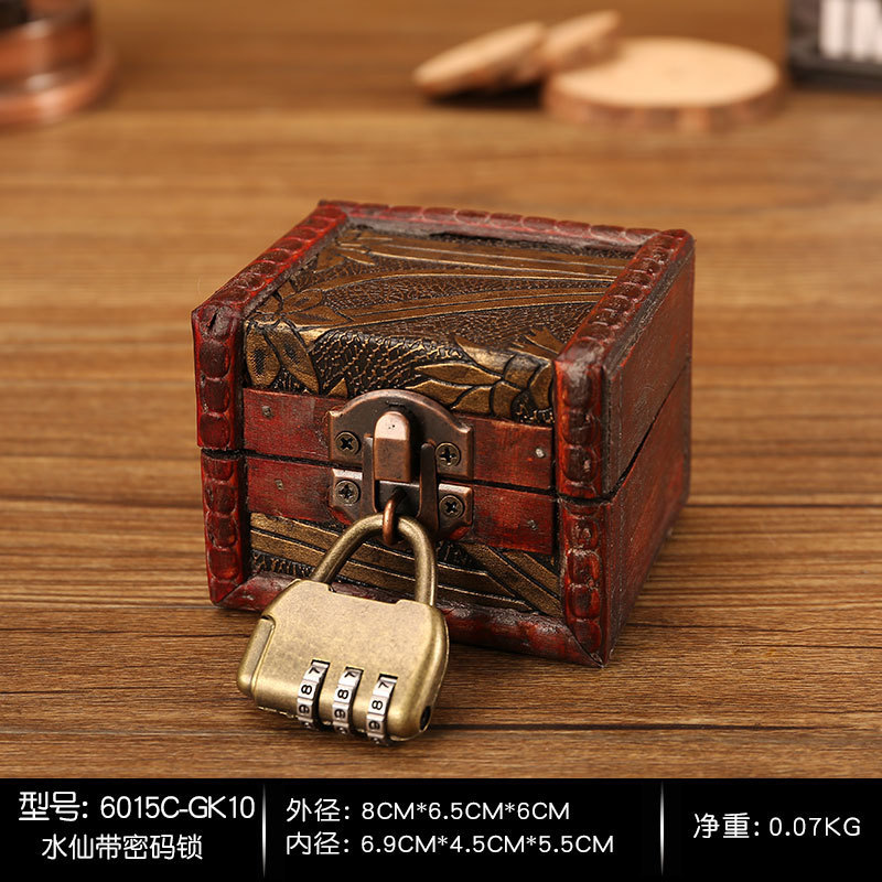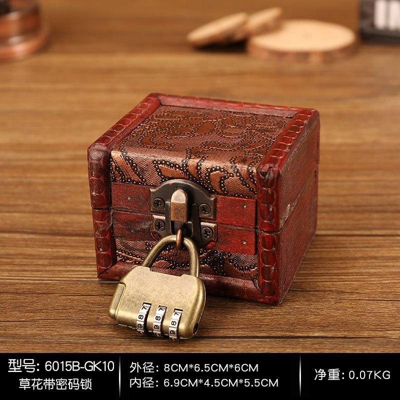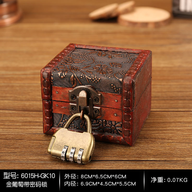 복고풍 스타일 반지 상자 미니 휴대용 나무 상자 광장 저장 상자 자물쇠 광장 암호 작은 상자 보석 상자