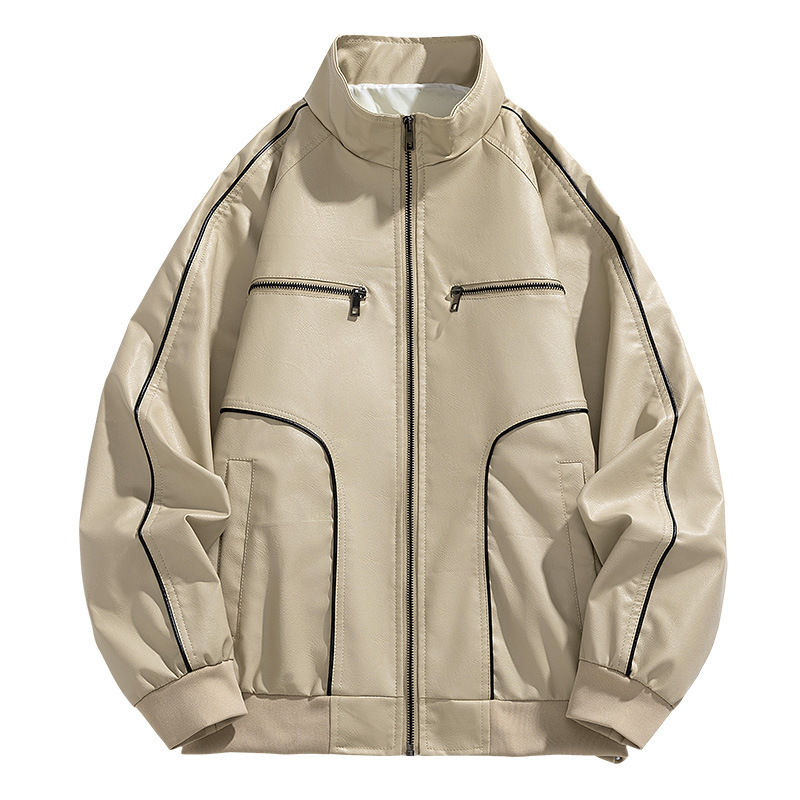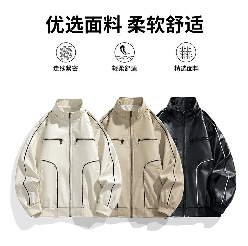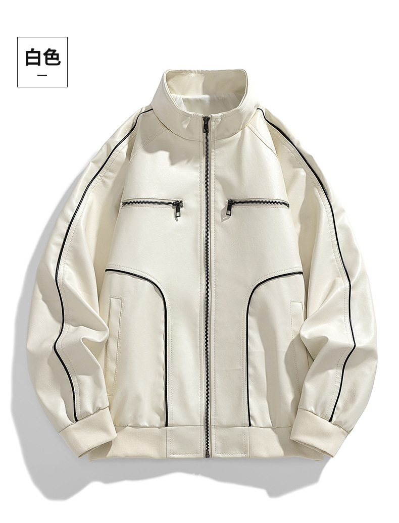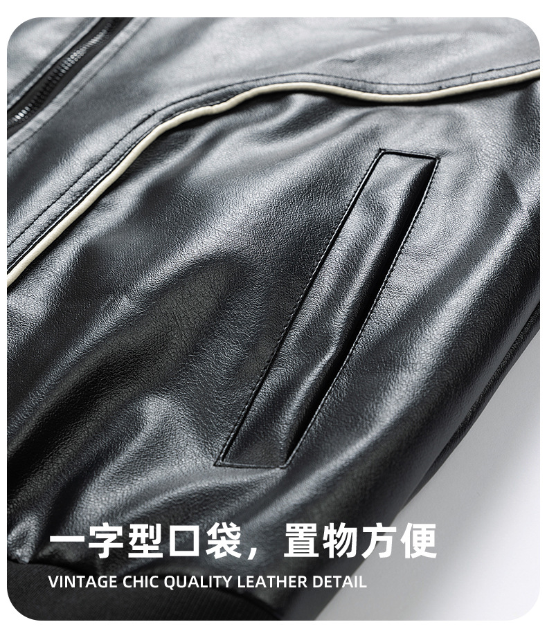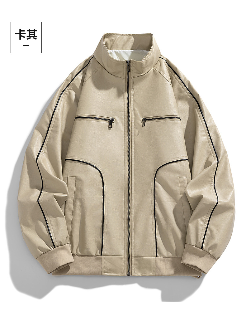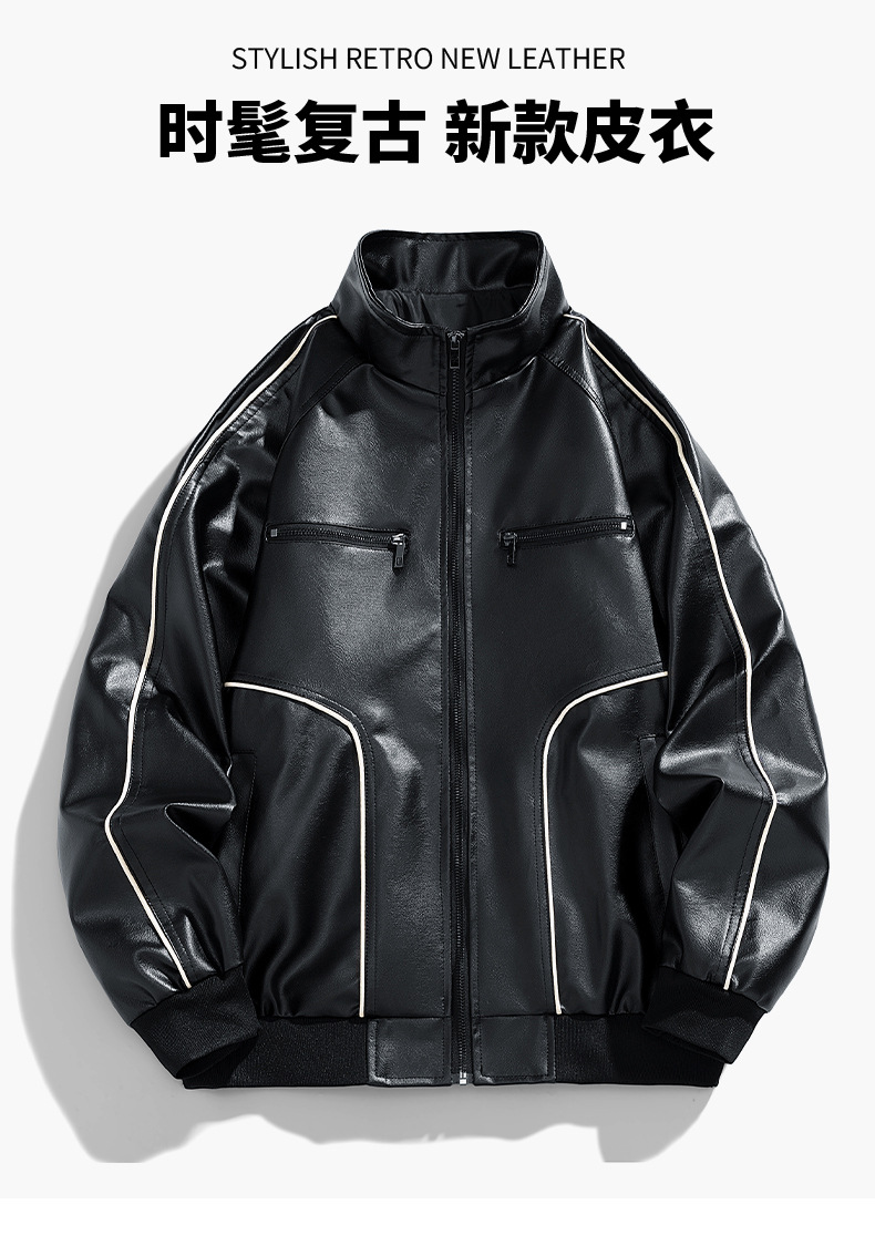 가을 2024 새로운 패션 칼라 캐주얼 올 매치 트렌디 브랜드 남성용 가죽 자켓스토어 가기
