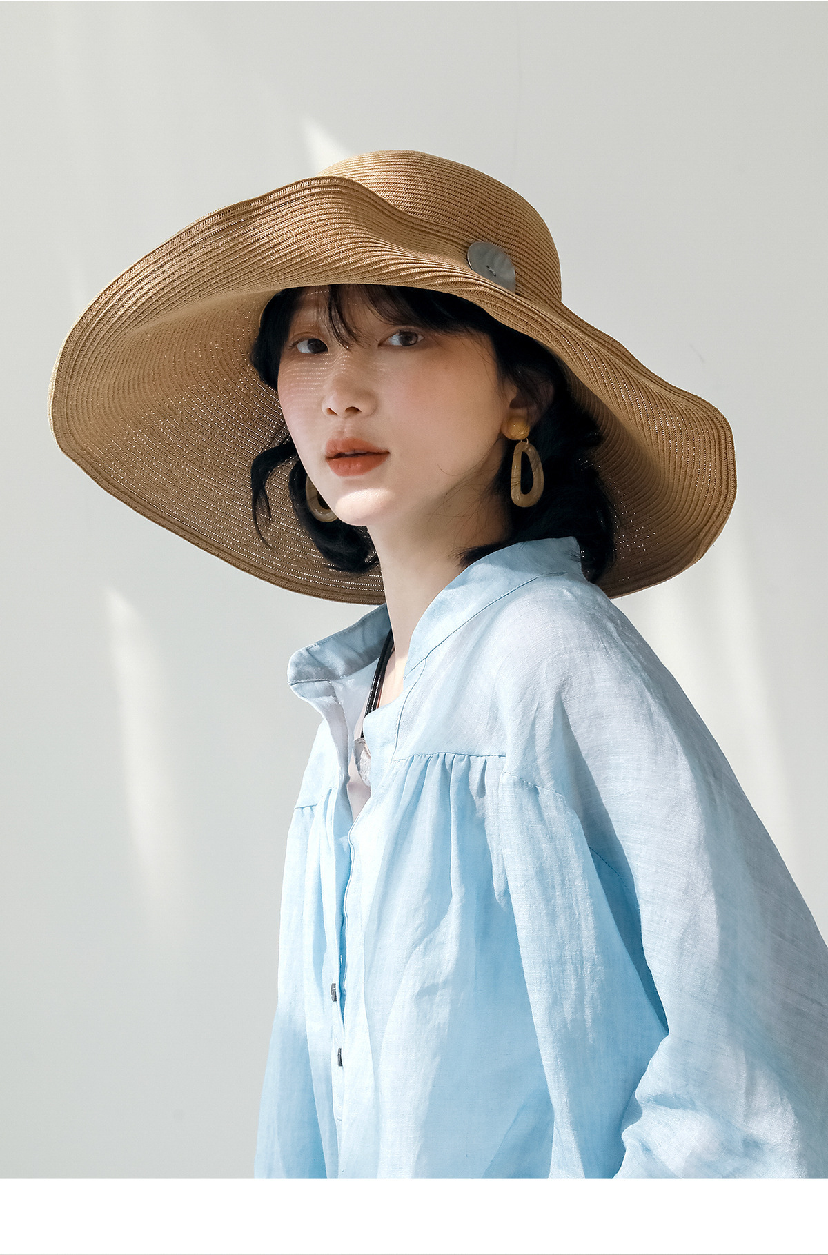 设计师款大檐防晒草帽女夏天百搭出游遮阳帽海边度假时尚太阳帽