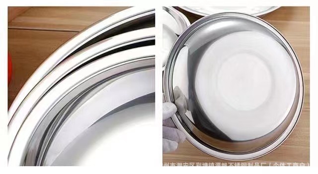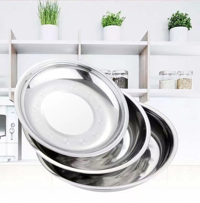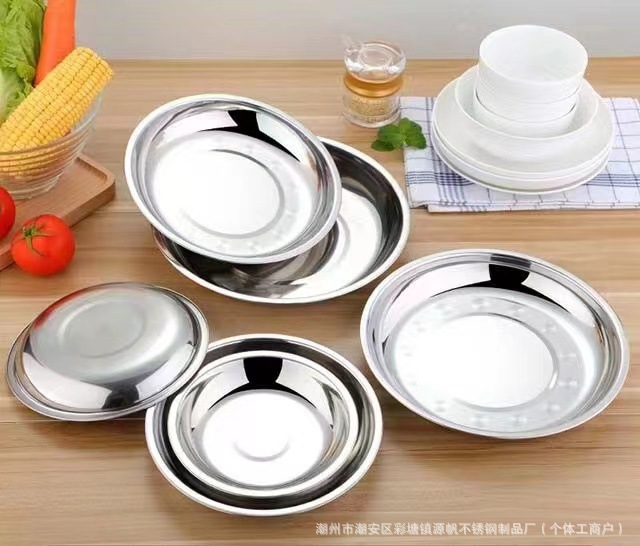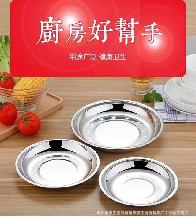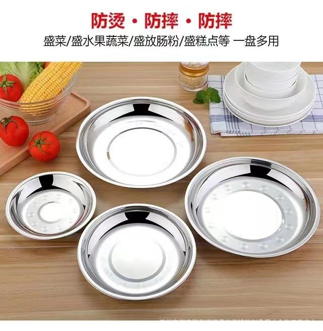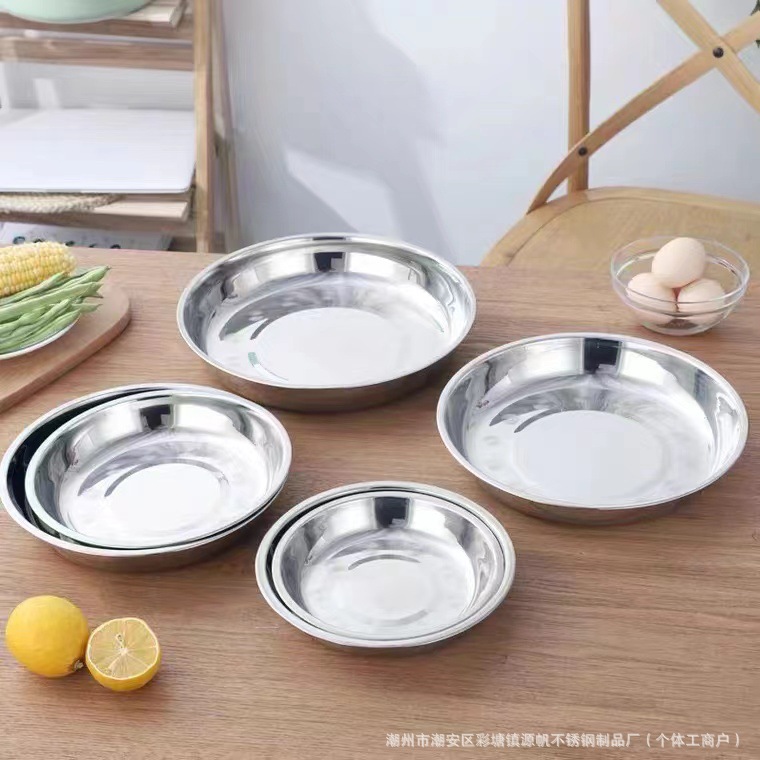 스테인리스 원형 접시 가정용 식기 호텔 원형 접시 주방 트레이 도매 간식 중국풍스토어 가기