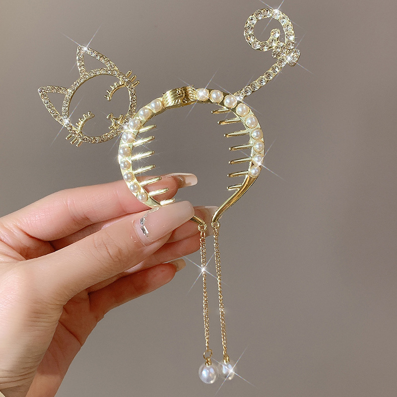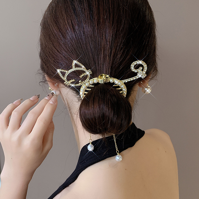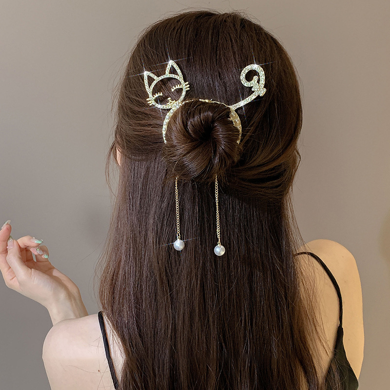 여름 여성을 위한 고양이 라인스톤 머리핀, 고급 진주 볼머리 머리핀, 여성용 뒷머리핀 머리핀