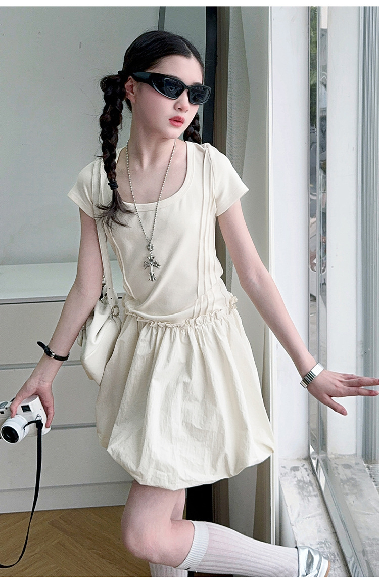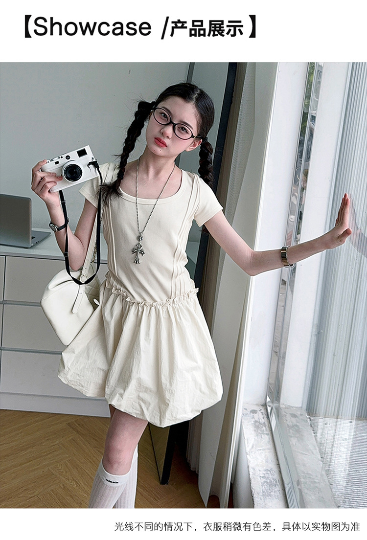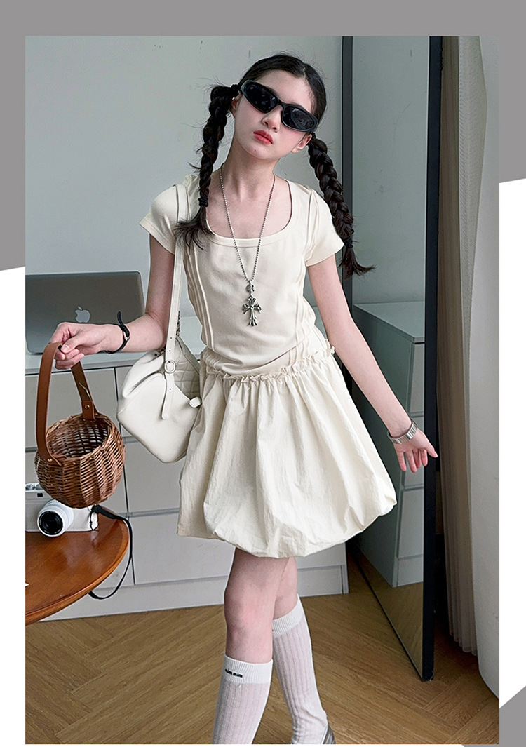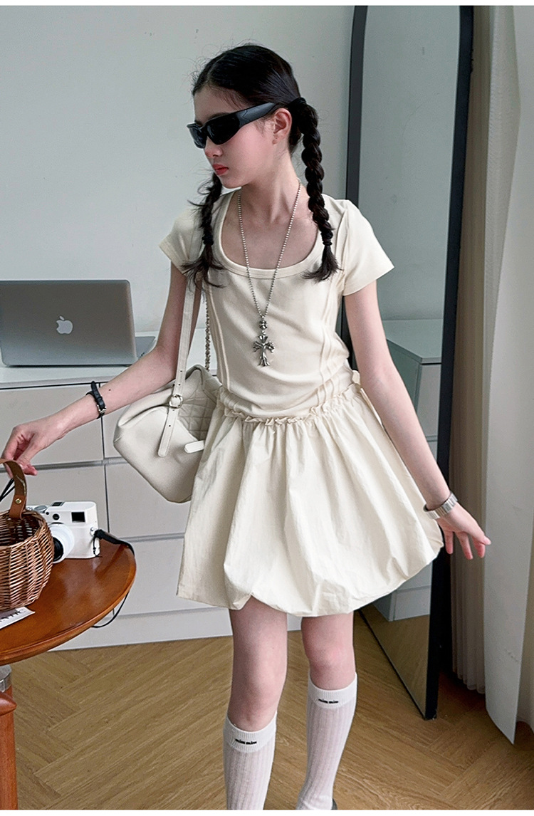 소녀 여름 원피스 2025 여름 소녀 빅 보이 달콤한 프랑스 스티칭 허리 버드 반팔 스커트