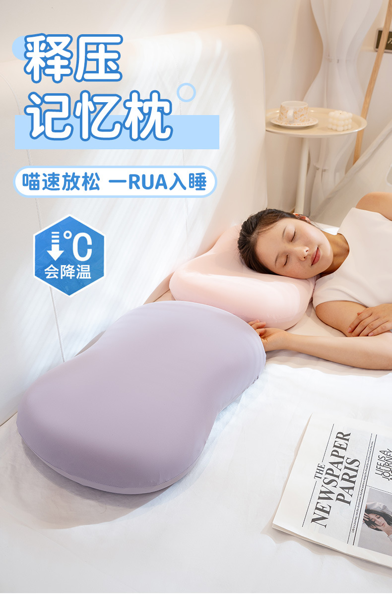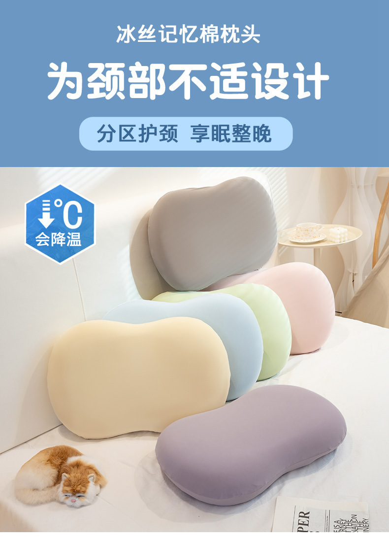 고양이 배 베개 얼음 실크 메모리 폼 베개 목 베개 부드러운 붕괴 파티션 측면 수면 느린 리바운드 수면 베개스토어 가기