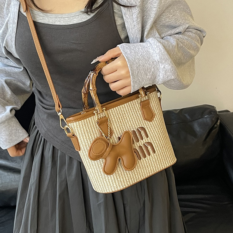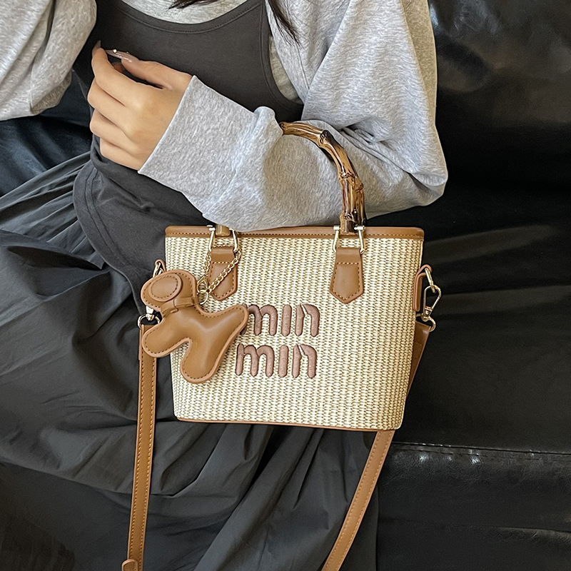 크로스보더 크로스백 2025 신상 패션 배색 대나무 핸들백 고급스러운 다용도 크로스백 여성용스토어 가기
