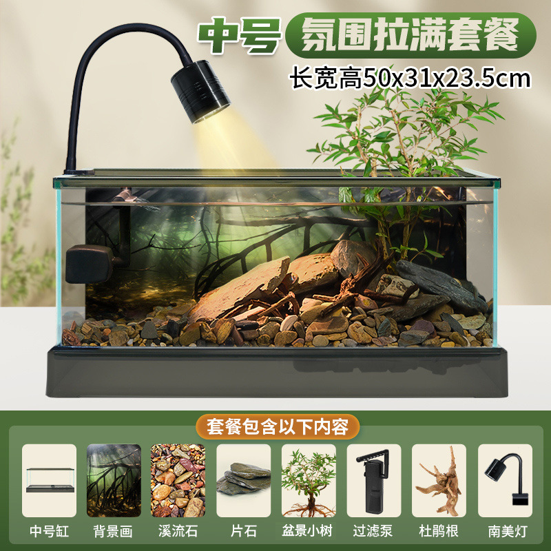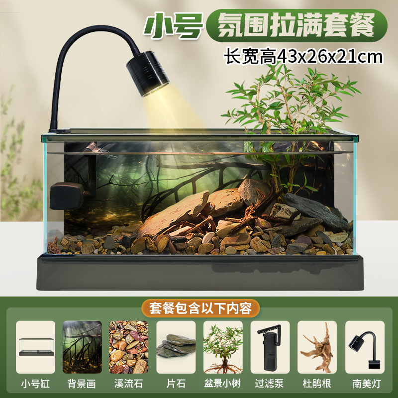 남미 스트림 탱크 새로운 유리 수조 네이티브 조경 홈 거실 작은 황금 생태 거북이 탱크 도매 핫 세일스토어 가기