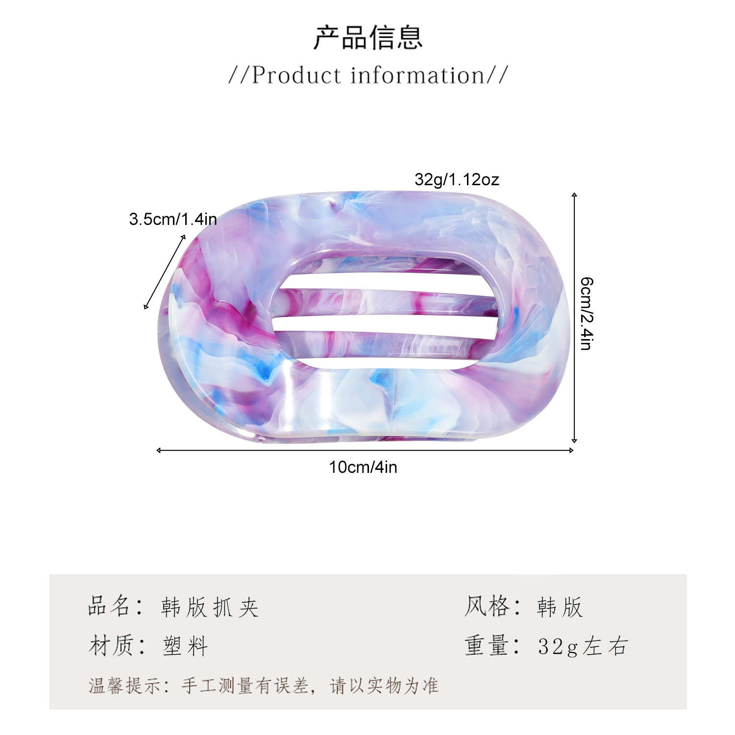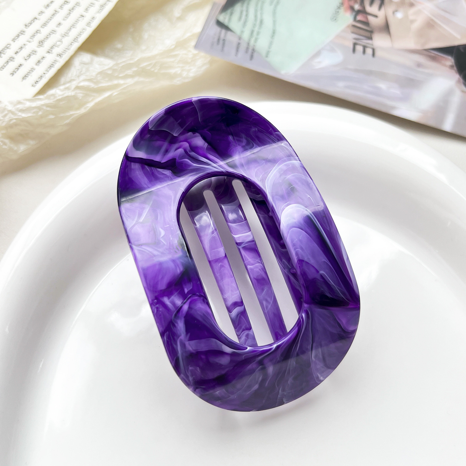 • 10cm 원형 클립-대리석 딥 퍼플