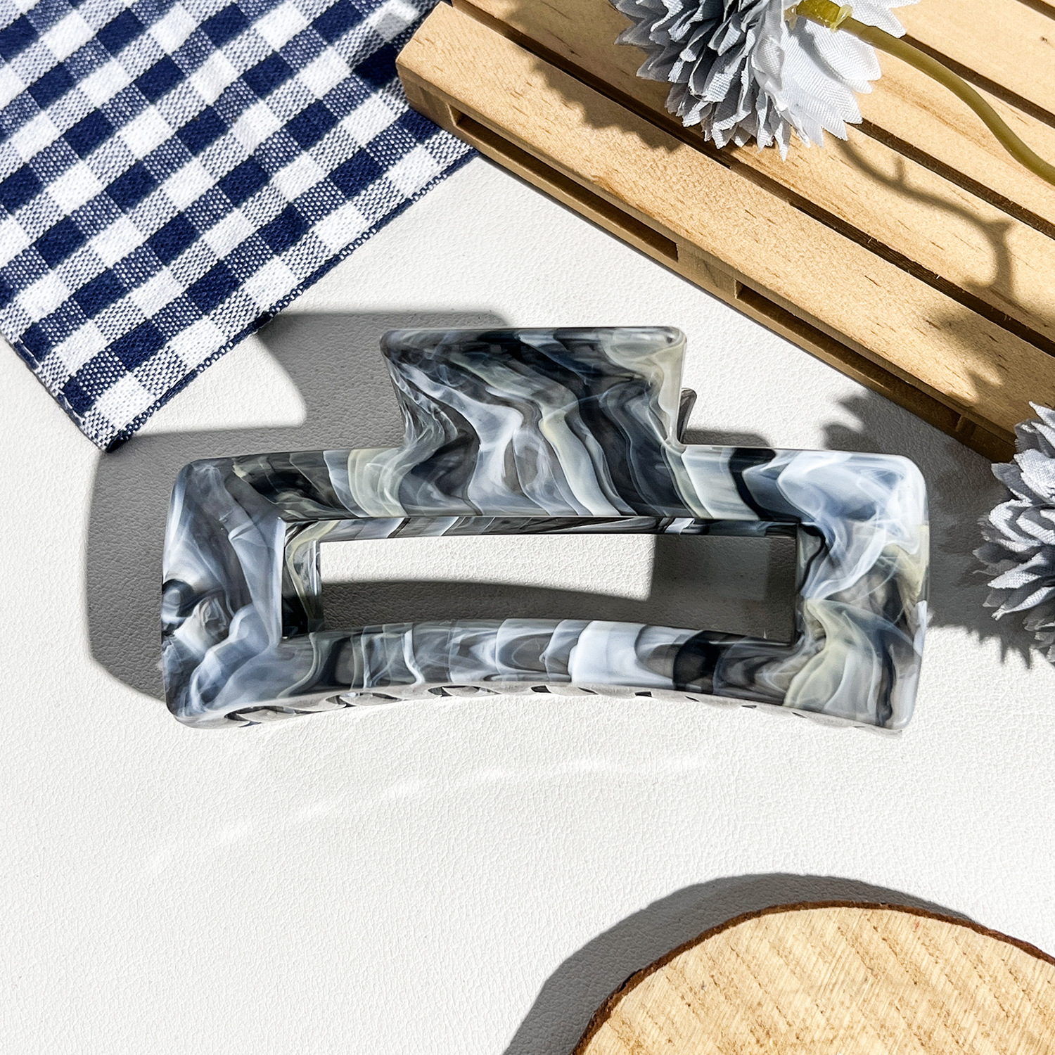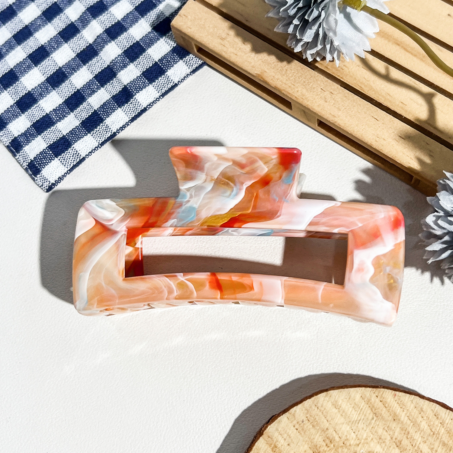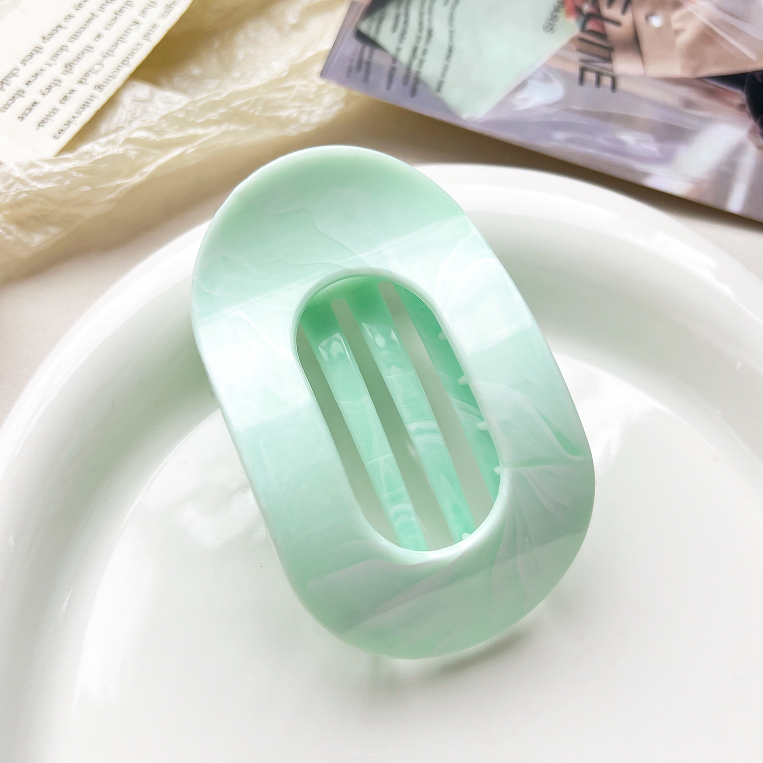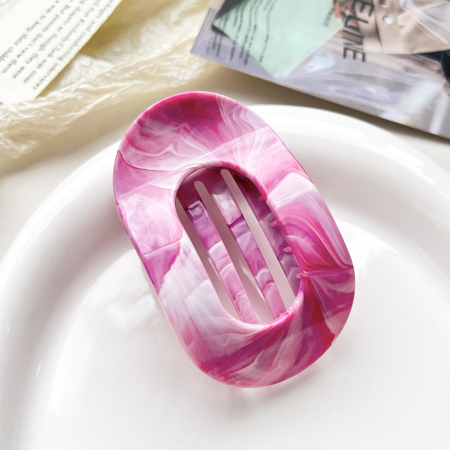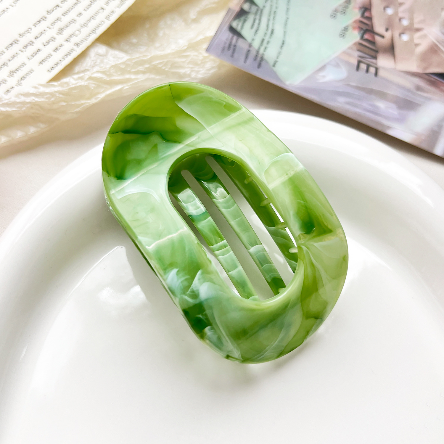 국경을 넘는 새로운 곡선 타원형 그리퍼 대리석 그라데이션 포니테일 머리 상어 클립 고급 헤어 액세서리 헤어 클립스토어 가기