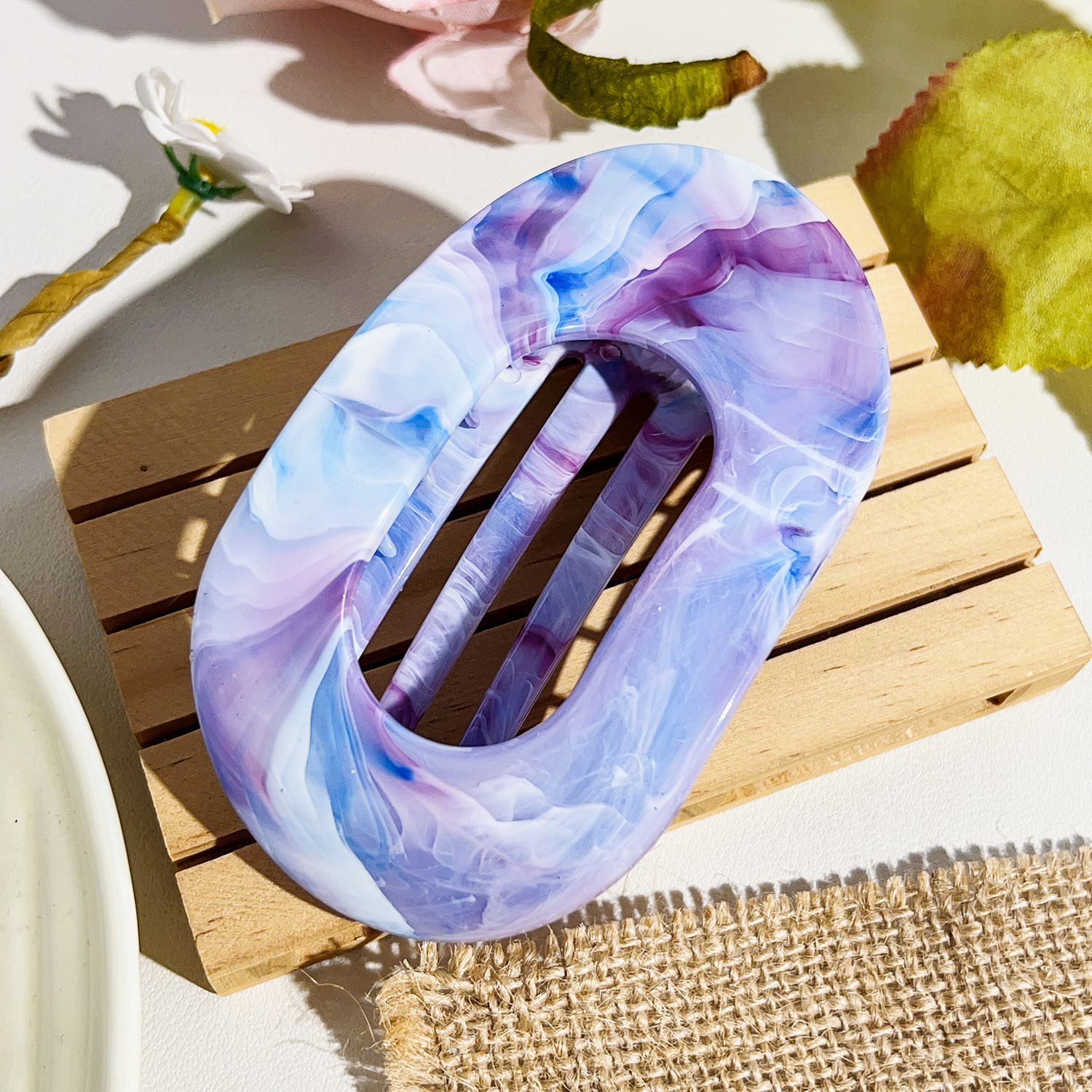 • 10cm 원형클립-대리석 블루와 퍼플