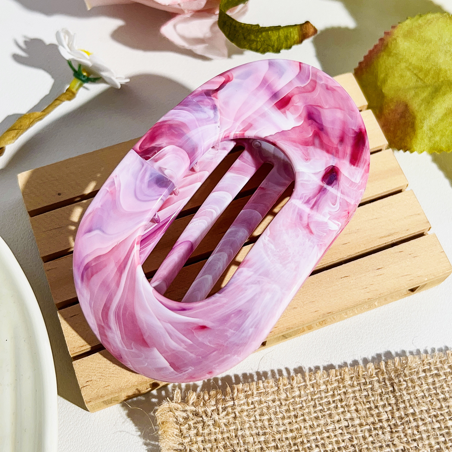 • 10cm 원형 클립-대리석 다크 핑크