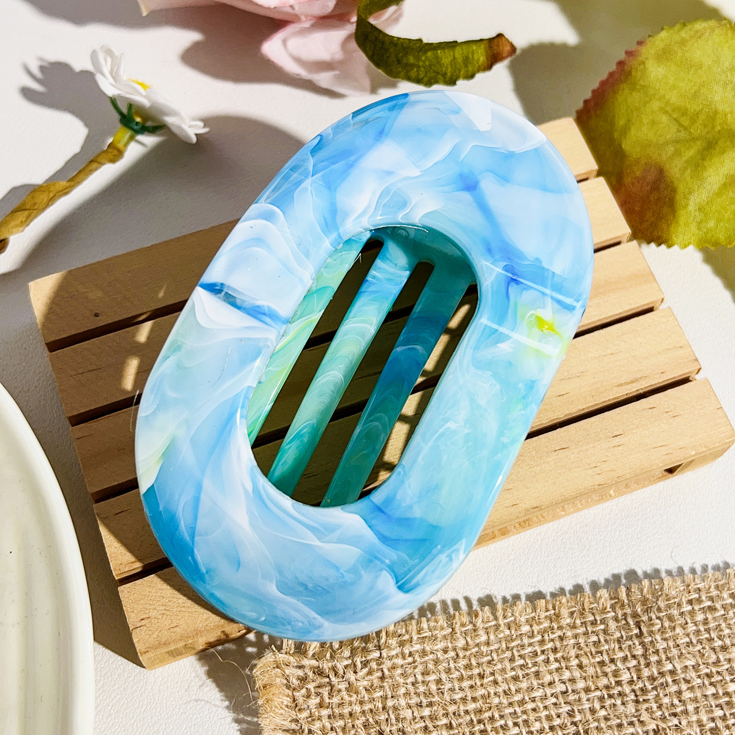 • 10cm 원형 클립-대리석 레이크 블루