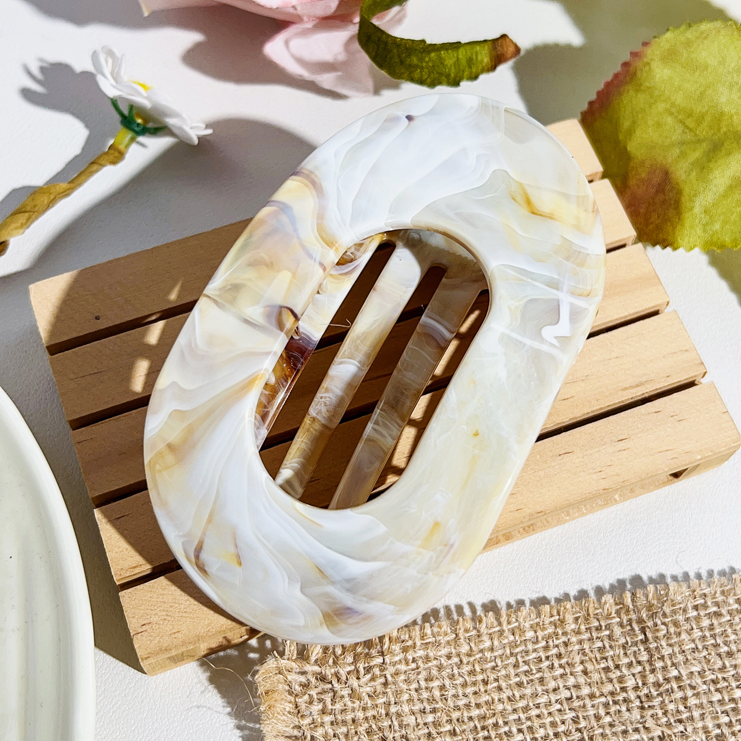 국경을 넘는 새로운 곡선 타원형 그리퍼 대리석 그라데이션 포니테일 머리 상어 클립 고급 헤어 액세서리 헤어 클립