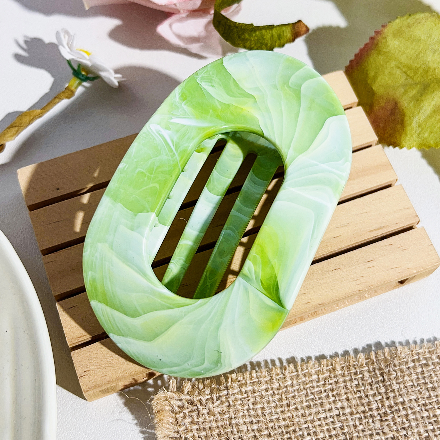 • 10cm 원형 클립-대리석 그린
