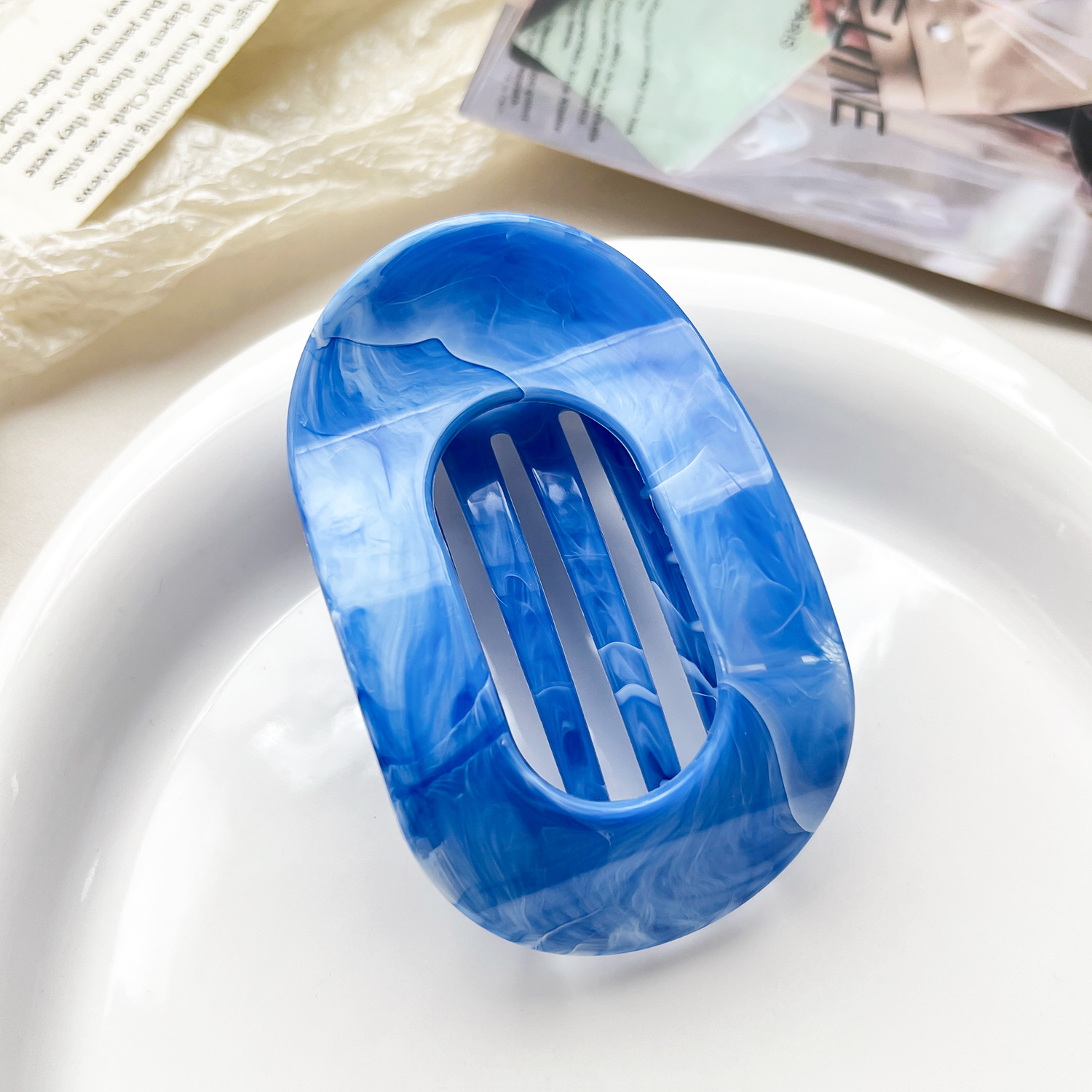 • 10cm 원형 클립-대리석 사파이어 블루