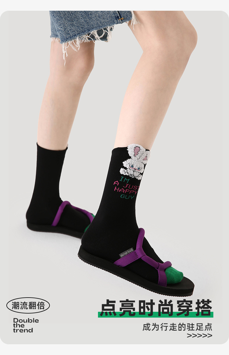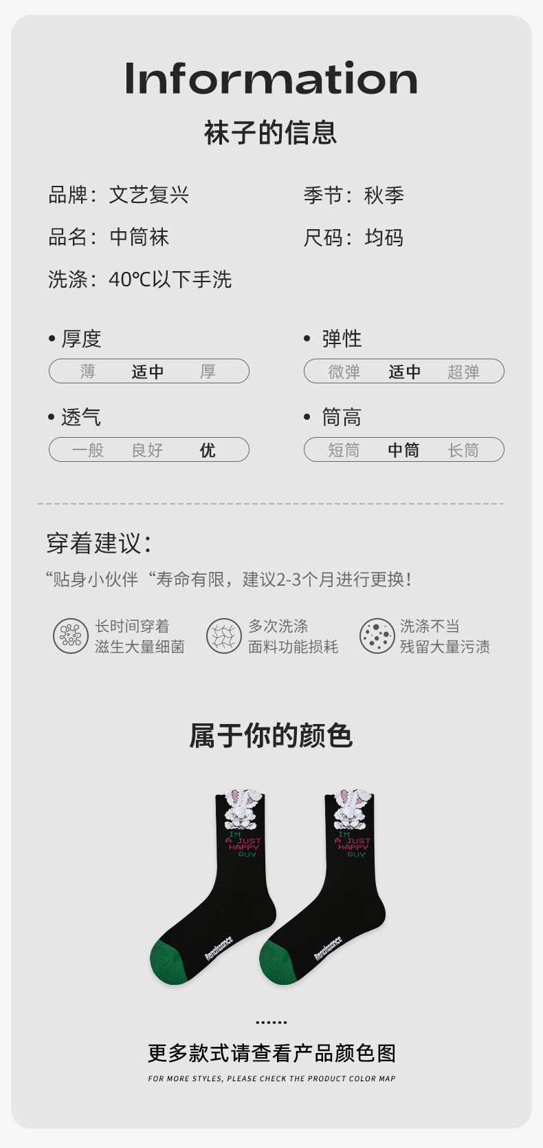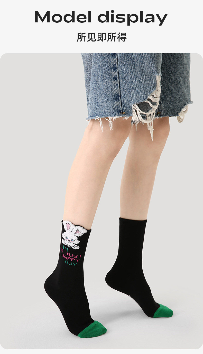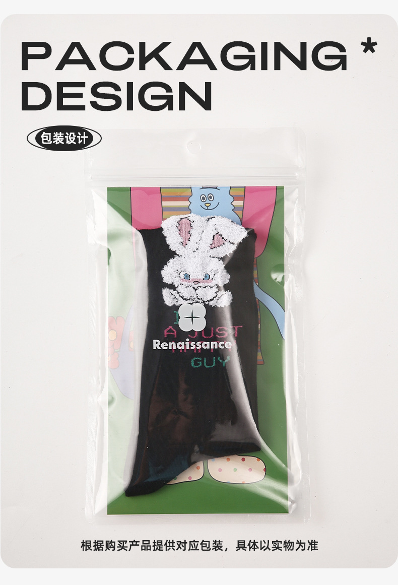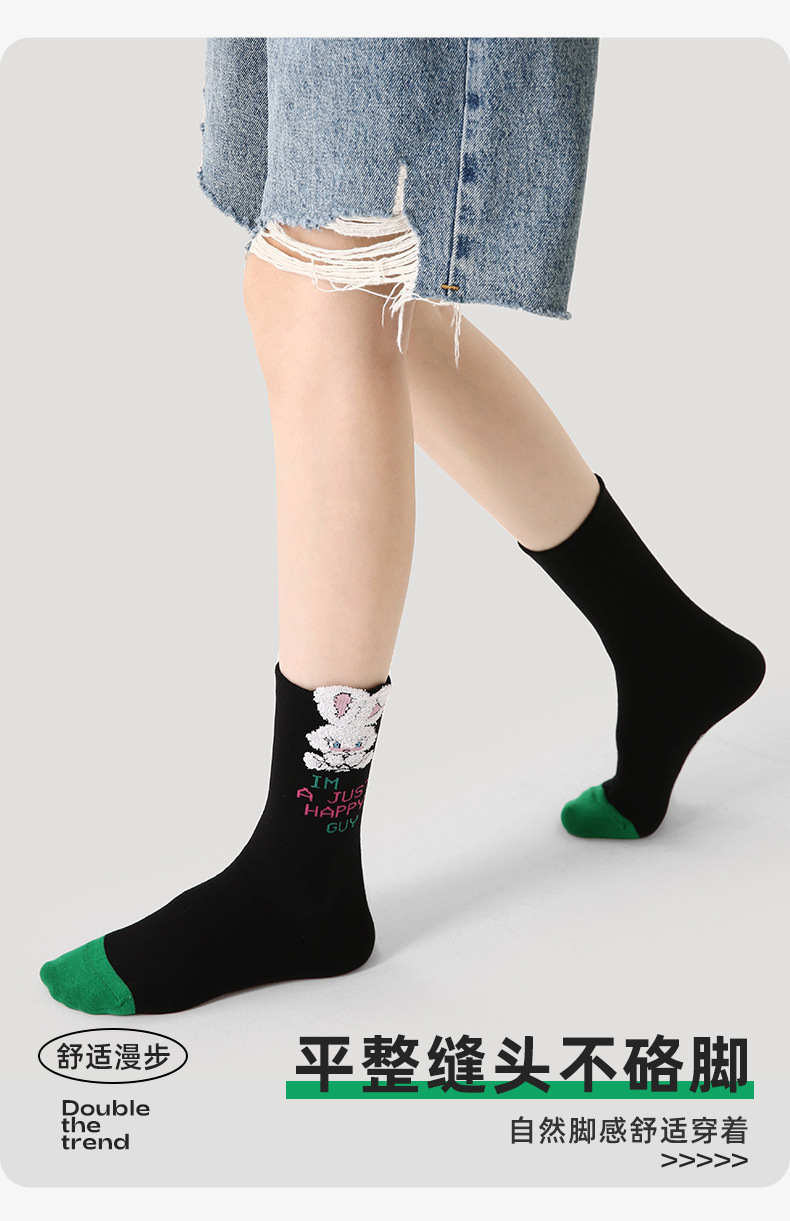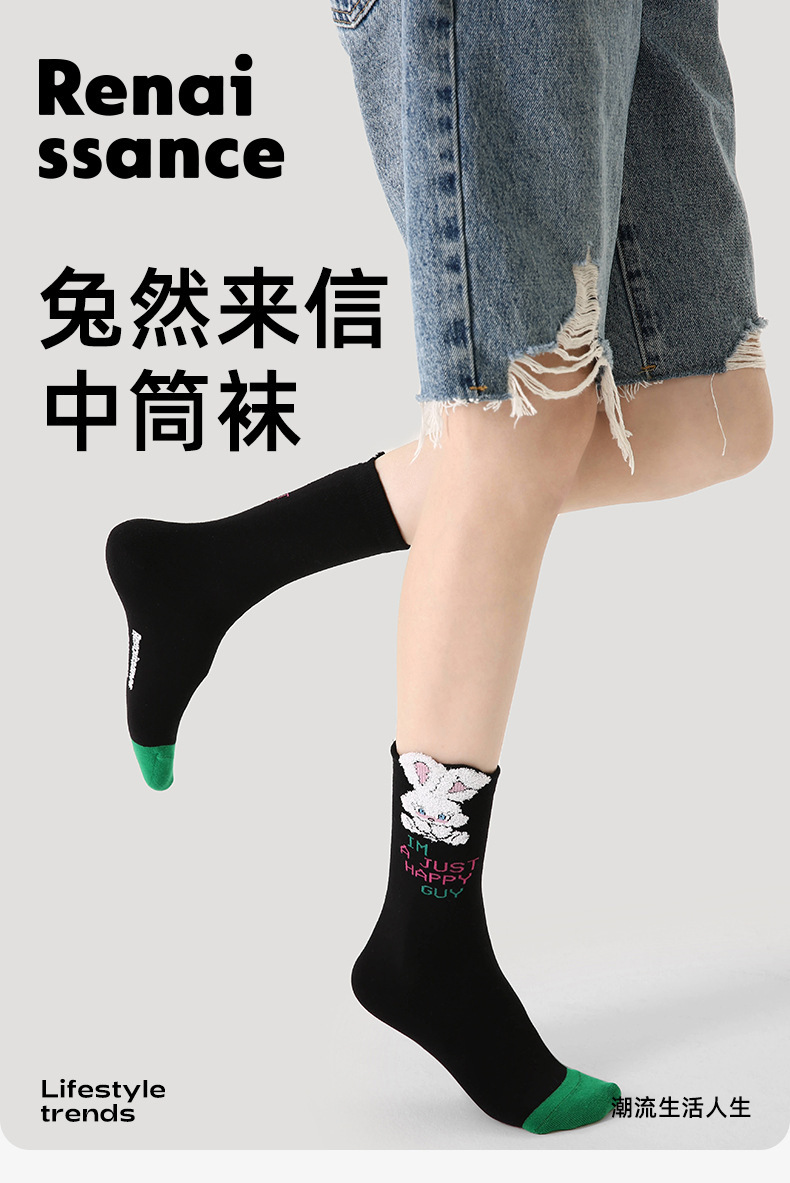 르네상스 양말 여성의 귀여운 토끼 학술 스타일 가리 편지 뼈없는 빗 코튼 미드 양말 얇은 통기성스토어 가기